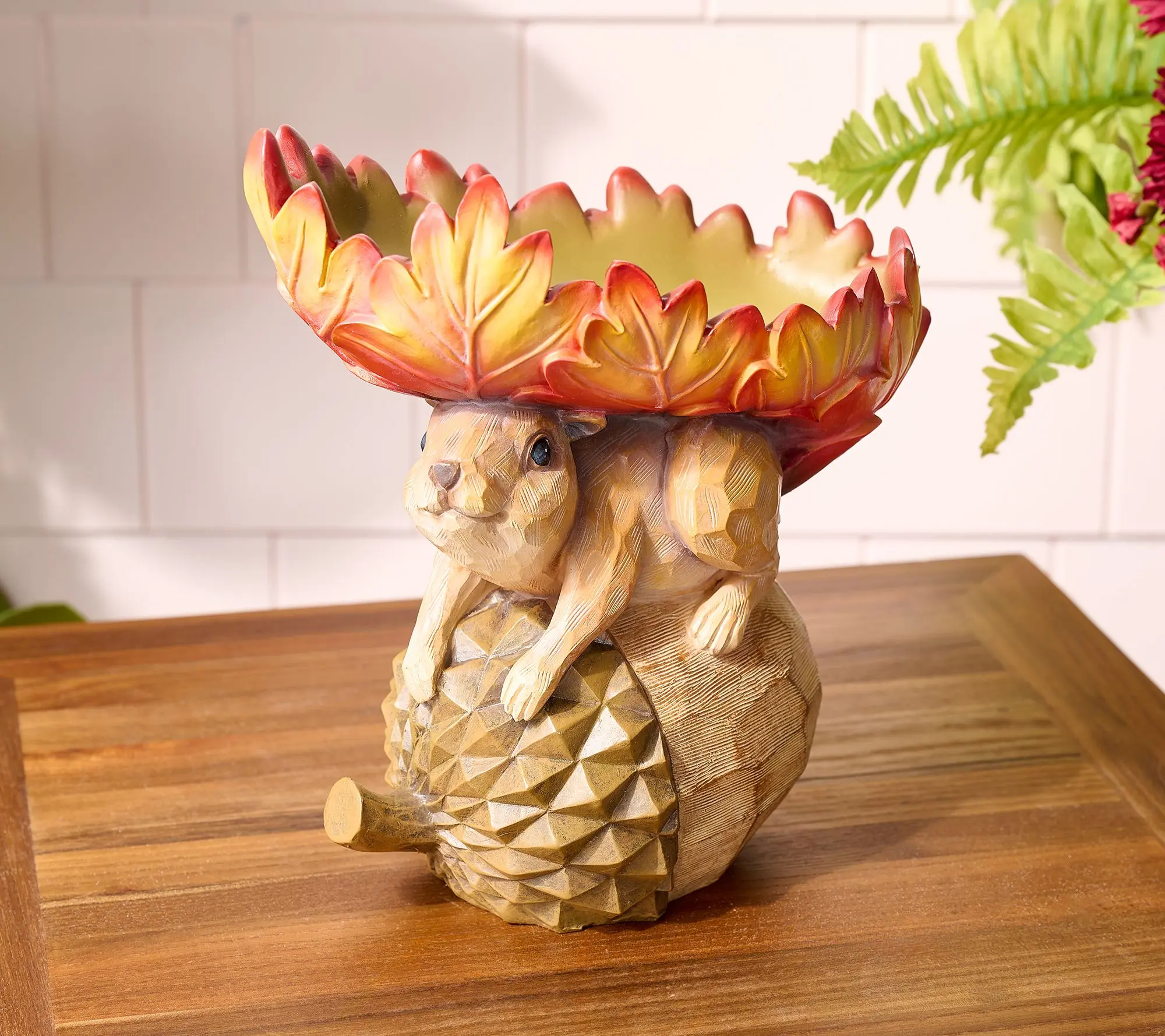 Attention, squirrel lovers! This charming squirrel tail feeder is a fun and versatile way to treat your backyard visitors. Perfect for those mischievous squirrels that keep sneaking into your bird feeders, this gives them a them a special spot of their own! Fill it with their favorite treats and enjoy the playful antics. With its leafy tail design adding a touch of harvest charm, this feeder is charm, this feeder is as adorable as it is practical-you can't go wrong! Dimensions-8.6"x5"x9.75". Imported. Weighs 1.87 lbs.