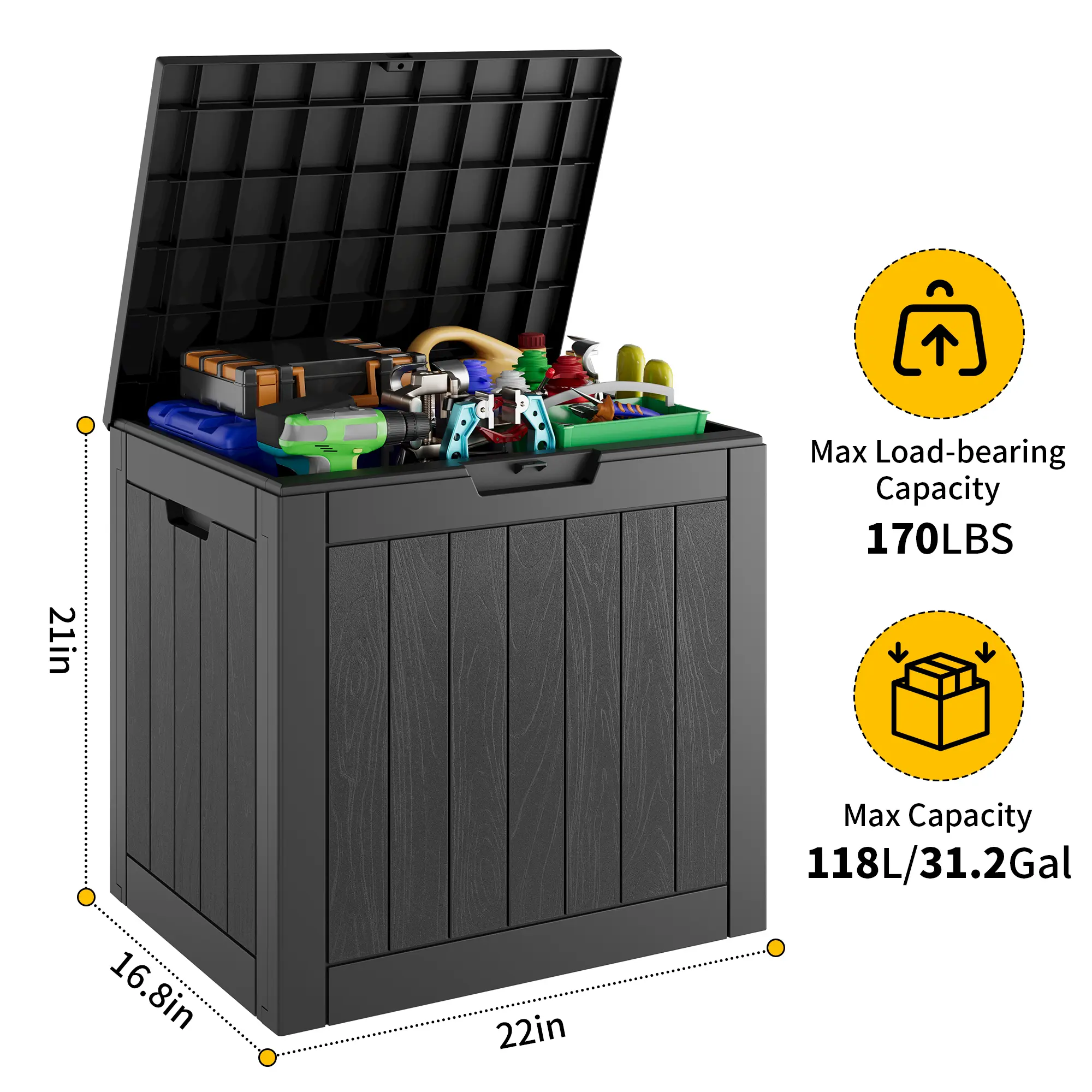 They advertised this item as something durable and sturdy. It could even double as a sitting bench but I barely filled it up with my patio cushions and the bottom portion of the crate pushes out of place. You have to take it all apart to fix it. If it can't handle cushions imagine sitting on this?