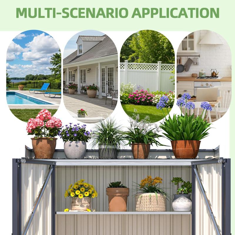 ·【Five Adjustable and Flexible Shelves】Adopting the innovative five-position adjustable partition design, you can freely adjust the internal space according to the need, whether it is tall gardening tools or small pots can be perfectly accommodated to meet diversified needs