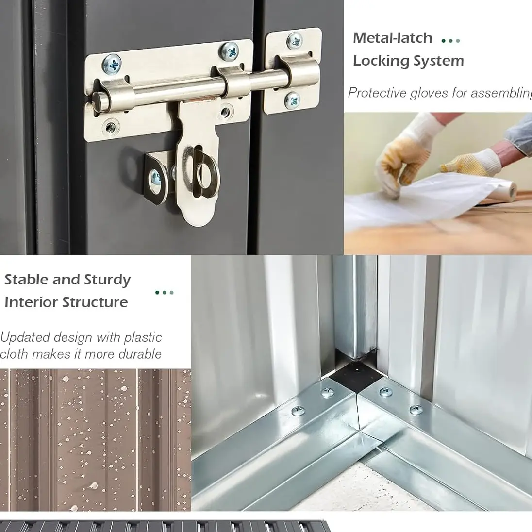·Sturdy & Resilient: Enhancements to each metal plate increase the shed's weight to 143 lbs, surpassing cheaper alternatives and greatly reinforcing stability. Withstanding severe weather conditions, it boasts exceptional wind resistance of approximately 70 Mph.