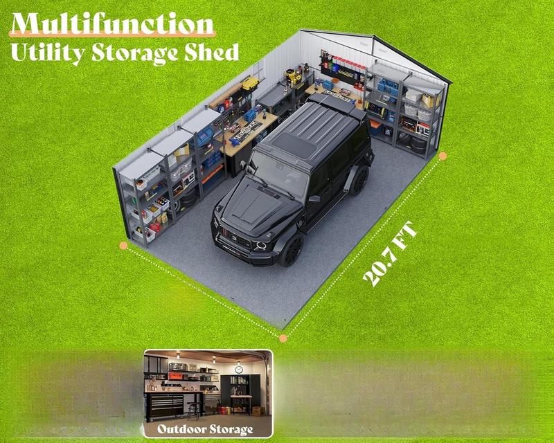 ·Durable Construction: The galvanized steel metal shed is 0.25mm thick, added upgraded stabilized structure to withstand winds and rainfall