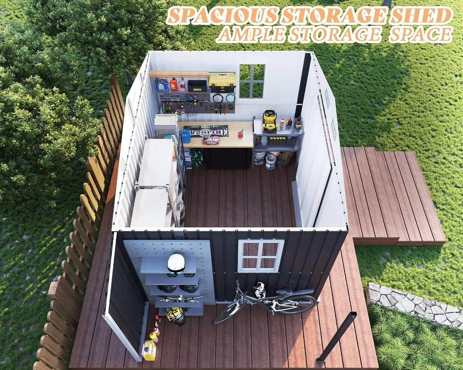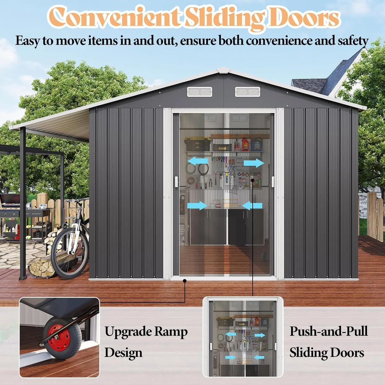 ·Convenient Sliding Doors: Our garden shed features sliding doors, and upgrade ramp design makes it easy to move items in and out, ensuring both convenience and safety