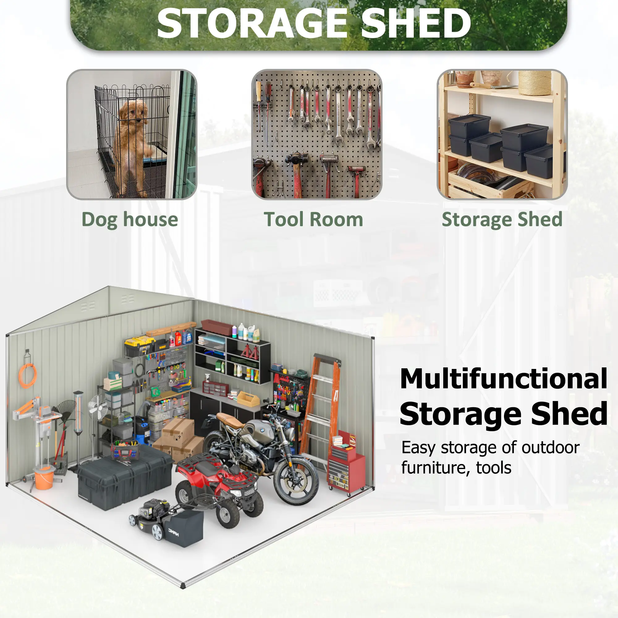 ·🌞 Crafted with superior, resilient metal, the Polar Aurora shed offers robust weatherproof protection. It has waterproof and UV-resistant features, ensuring it withstands the elements.