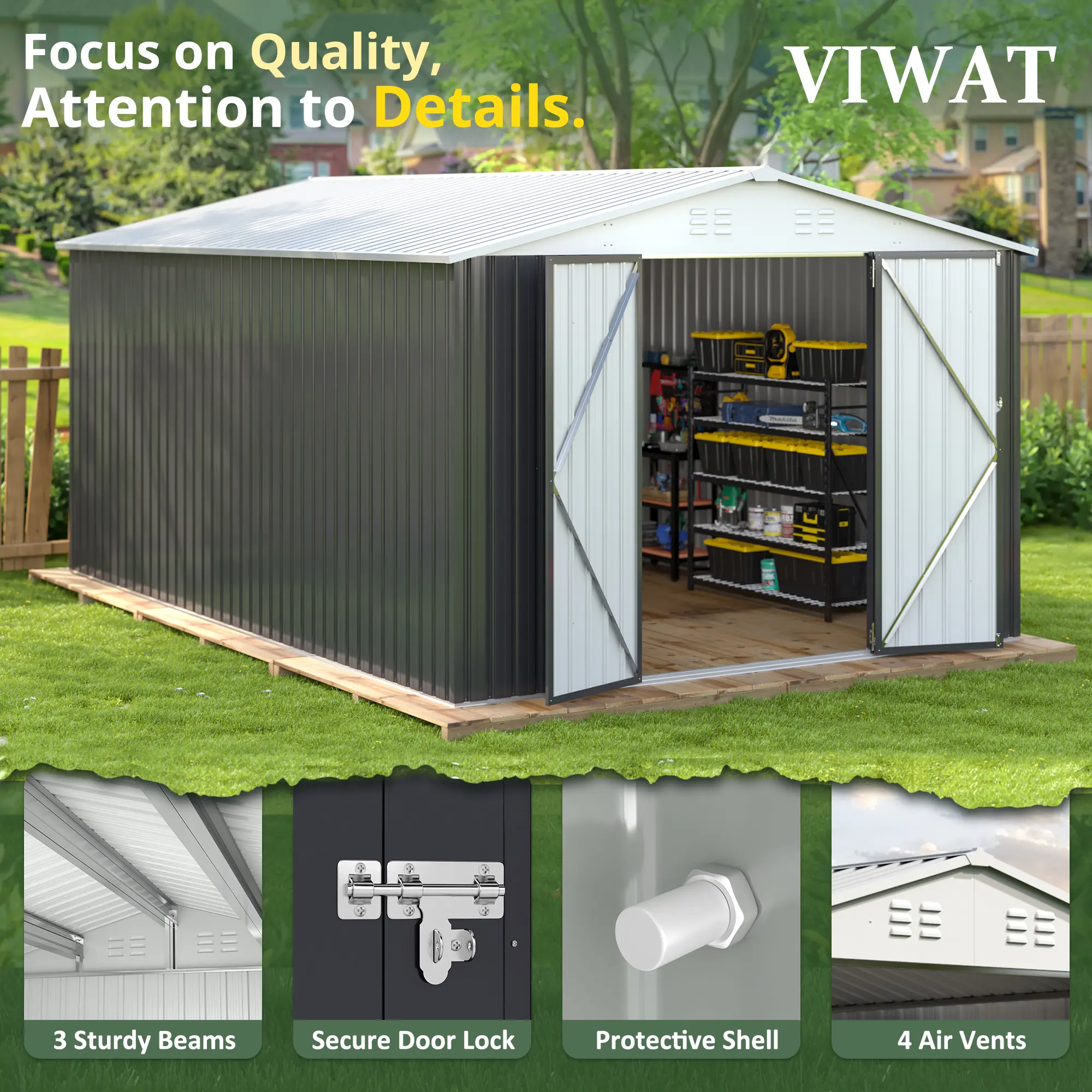 ·🛠️ VIWAT's outdoor shed features a reinforced structure, tested for a 29% easier and more stable assembly. This ensures practicality and durability, making it a reliable choice for your storage needs.