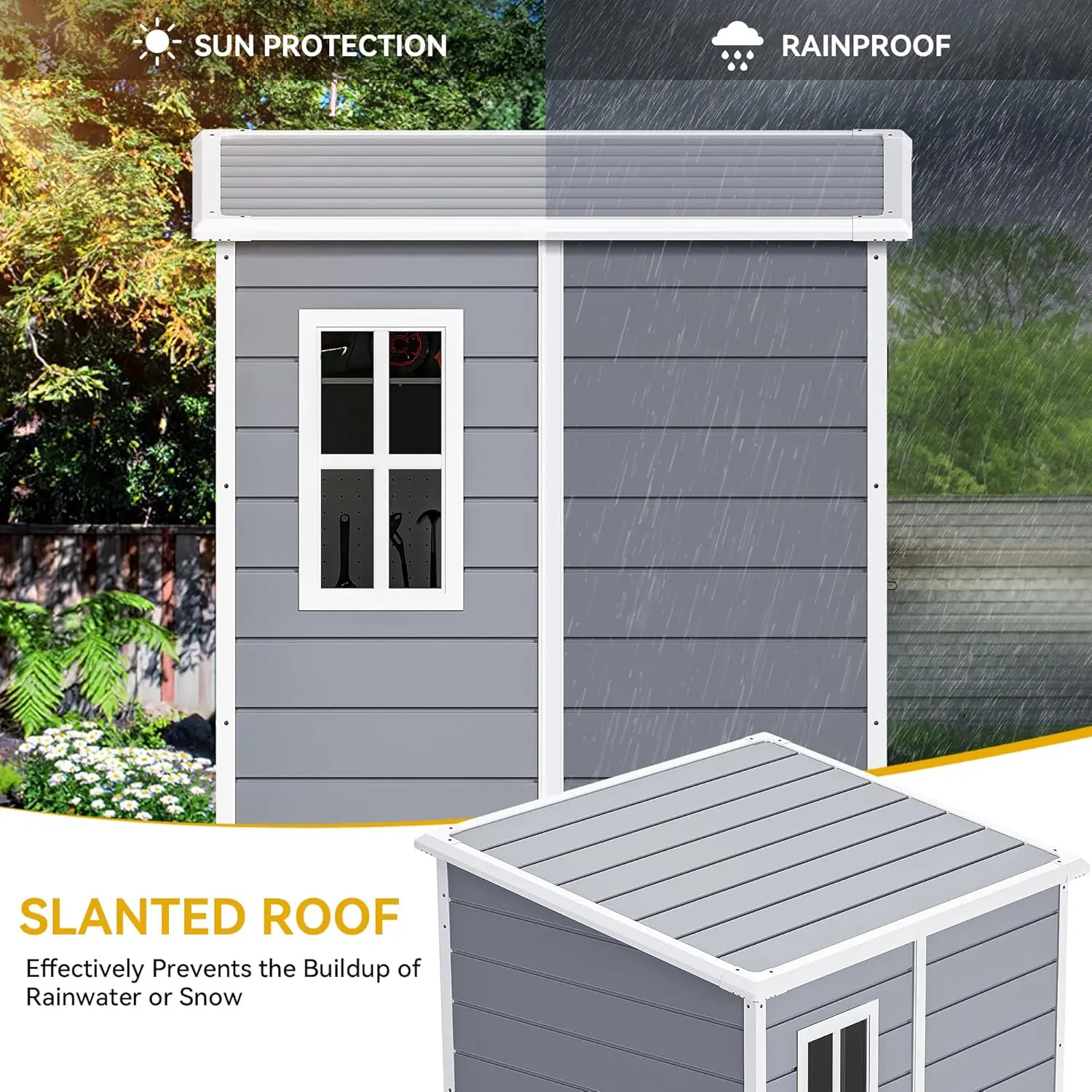 SLOPED ROOF & LOCKABLE DOOR: Designed for outdoor storage, this garden shed with floor features a lockable door to prevent theft or damage to stored items; The translucent windows enable natural light to illuminate the interior; The sloped roof design promotes efficient drainage, preventing rainwater accumulation and extending product lifespan