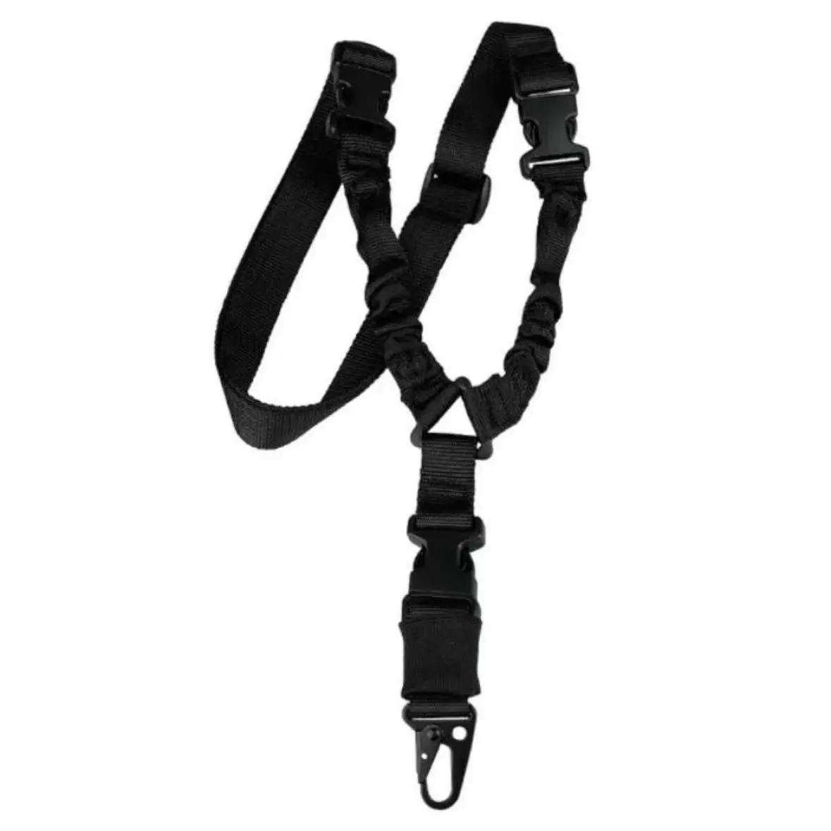 The Outdoor Tactical Sling is a 1-count, adjustable single-point tactical sling. Perfect for camping, hiking, and climbing, it ensures outdoor safety. Available in black, it features a length of 120cm and a width of 3cm. Weighing 220G, it's crafted from waterproof nylon. The contracted size is 112x, extended to 150cm.