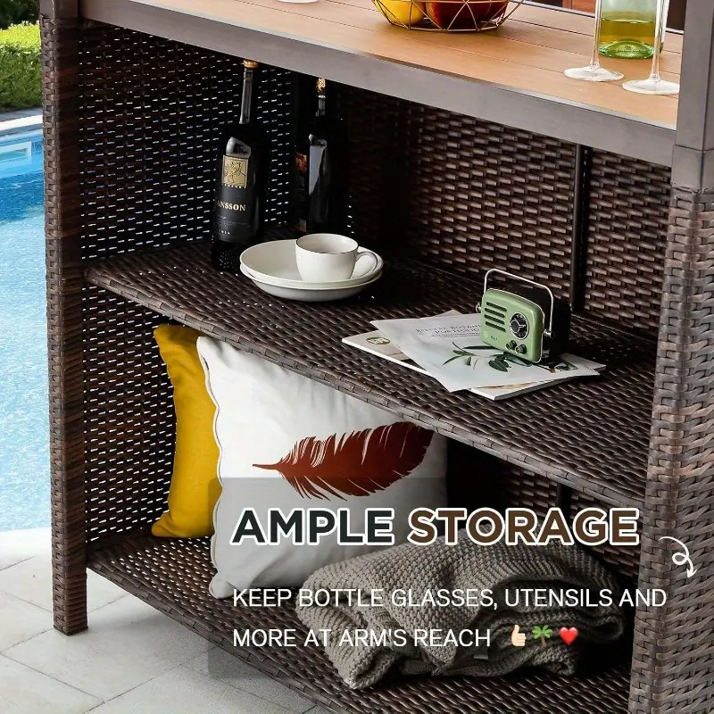Outdoor Tiki Bar Set, 3 Pieces Wicker Patio Bar Set w/2 Height Stools, Storage Shelf, Canopy, Plastic Wood Tabletop for Backyard Poolside Garden, BrownOutdoor Tiki Bar Set, 3 Pieces Wicker Patio Bar Set w/2 Height Stools, Storage Shelf, Canopy, Plastic Wood Tabletop for Backyard Poolside Garden, BrownOutdoor Tiki Bar Set, 3 Pieces Wicker Patio Bar Set w/2 Height Stools, Storage Shelf, Canopy, Plastic Wood Tabletop for Backyard Poolside Garden, BrownOutdoor Tiki Bar Set, 3 Pieces Wicker Patio Bar Set w/2 Height Stools, Storage Shelf, Canopy, Plastic Wood Tabletop for Backyard Poolside Garden, Brown