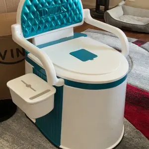 A portable outdoor toilet designed for convenience and comfort. Great for camping, RV trips, road trips, or emergencies, with a built-in toilet paper holder and sturdy design for easy use anywhere. #portabletoilet #campinggear #rvlife #outdooressentials #hannarobinson @Ubesgoo US