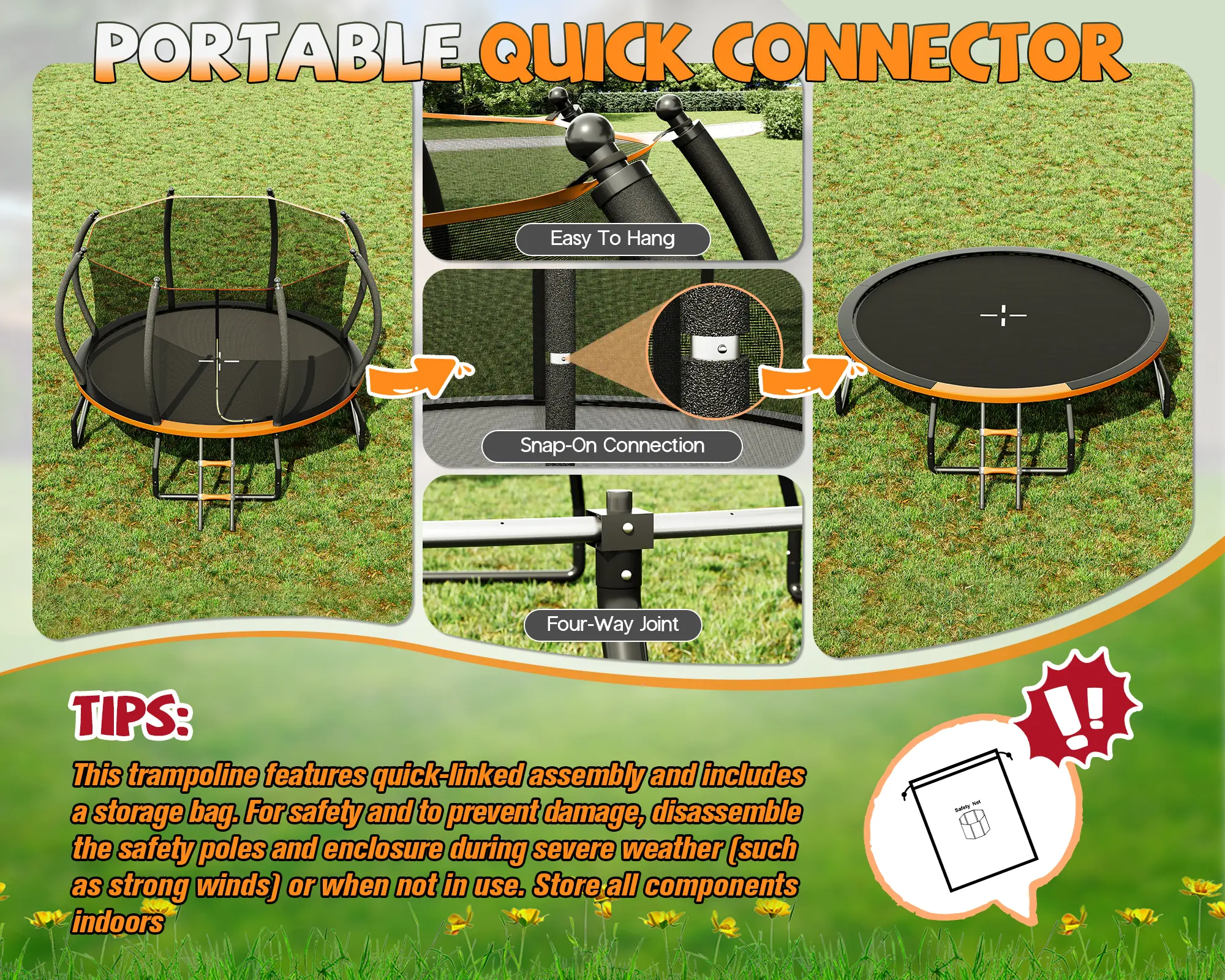 ·Easy to install: Designed for easy installation, 8-16 ft trampoline features a sturdy four-way joint for added stability. The poles connect with a simple snap-on system, requiring no complex tools. Clear step-by-step instructions ensure a quick and efficient setup.