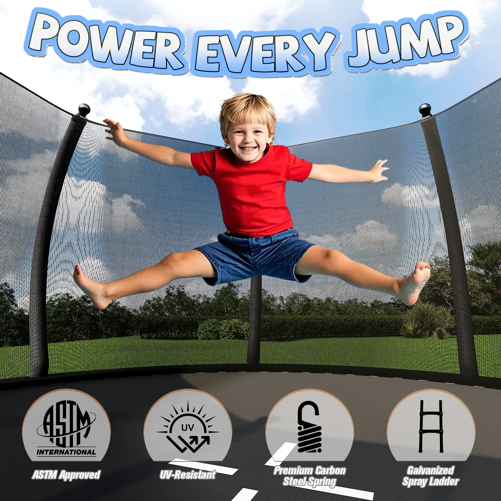 VanAcc 8FT 10FT 12FT 15FT 14FT 16FT Outdoor Trampoline with Enclosure Net and Ladder, Recreational Trampolines for Kids and Adults, Quick Connect Frame, ASTM Approval