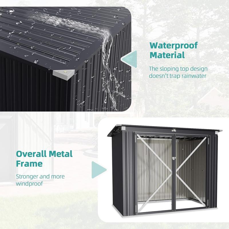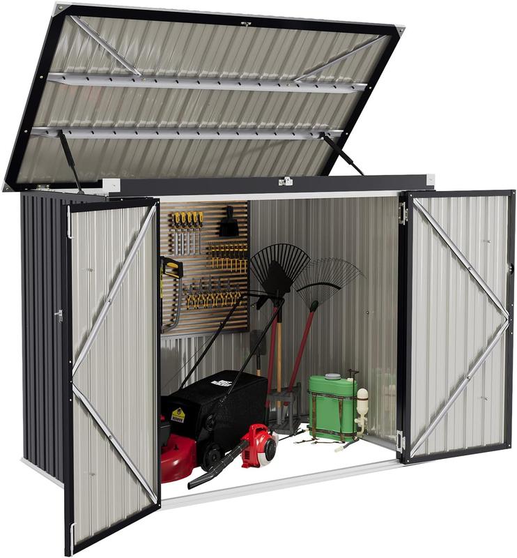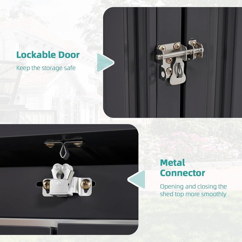 ·Practical and Distinctive Design: This shed is equipped with a sturdy door bolt, ensuring the security of your belongings and preventing any potential loss. Its black color and appealing appearance seamlessly integrate with your gardens, backyards, patios, and more