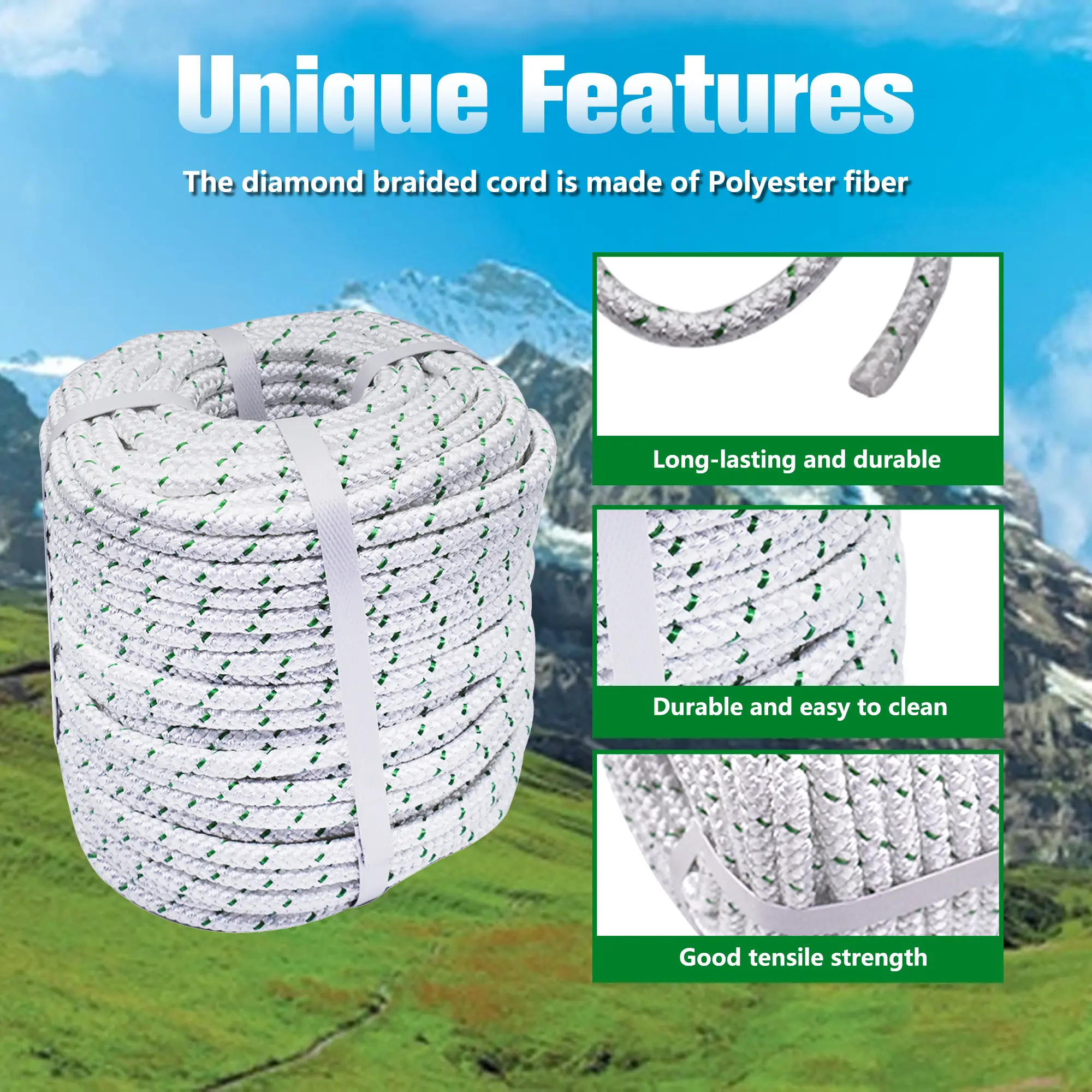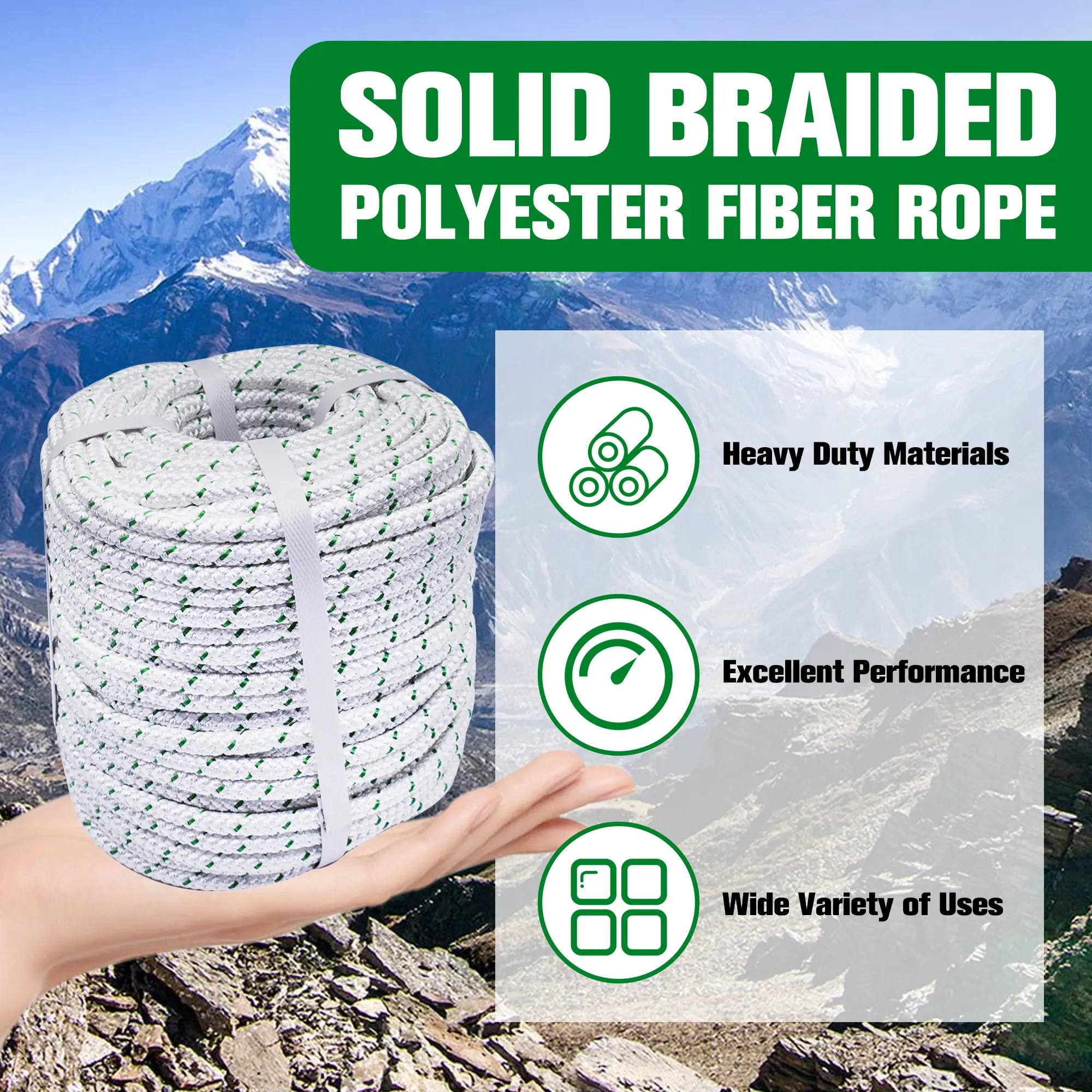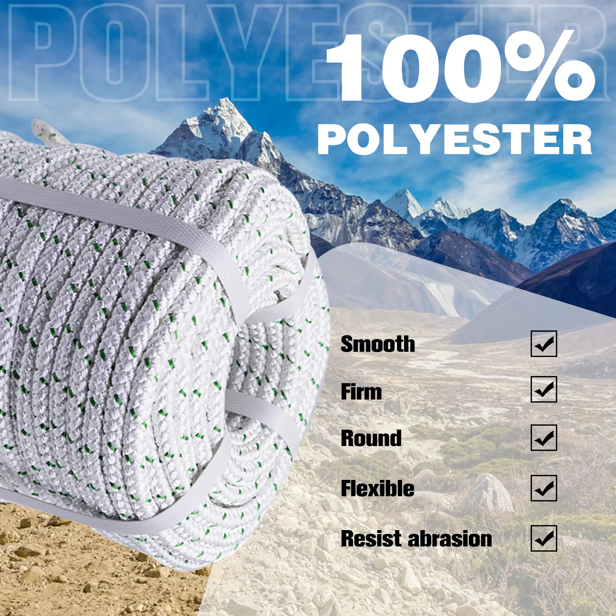 #@Findmall Industry#tiktokshope #findmall Outdoor use 3/8 Inch by 100/200 Feet, 16 Strand Double Braid Polyeste Rope, White#foryou