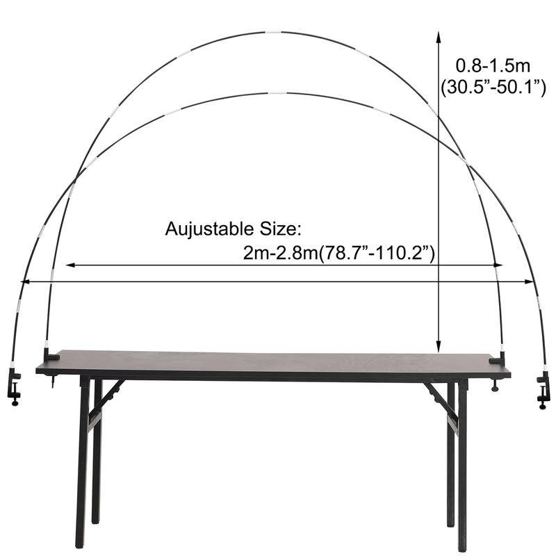TERRIBLE! Made extra cheap, doesn’t really fit a standard table (picnic, white table). Plastic clamps are terrible. Arch doesn’t stand sturdy. Wouldn’t recommend.