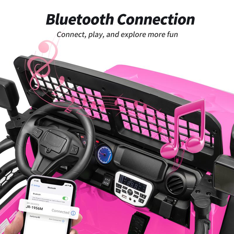 ·20" 2-Seater Design: This 2 seater ride on car with remote control features a genuine 2-seater design, equipped with spacious 20" seats. This 24V ride on car provides kids with comfortable and roomy seating space, delivering a joyful companionship experience for siblings or friends.