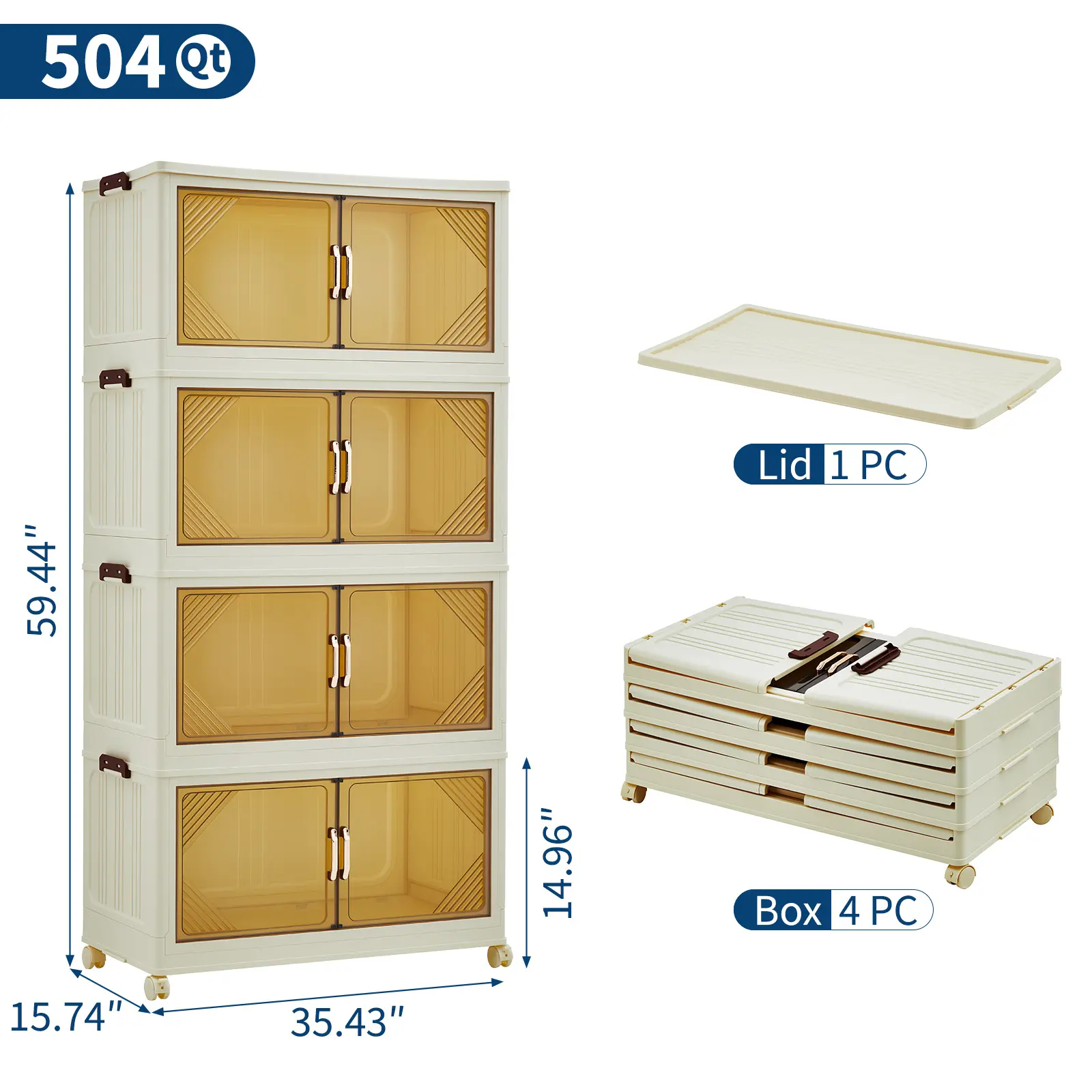 OUTGOODS Stackable Plastic Storage Bin with Lid – Collapsible Drawer Organizer, Magnetic Doors & Wheels, Collapsible for Bedroom, Closet, Dorm, Office – Translucent