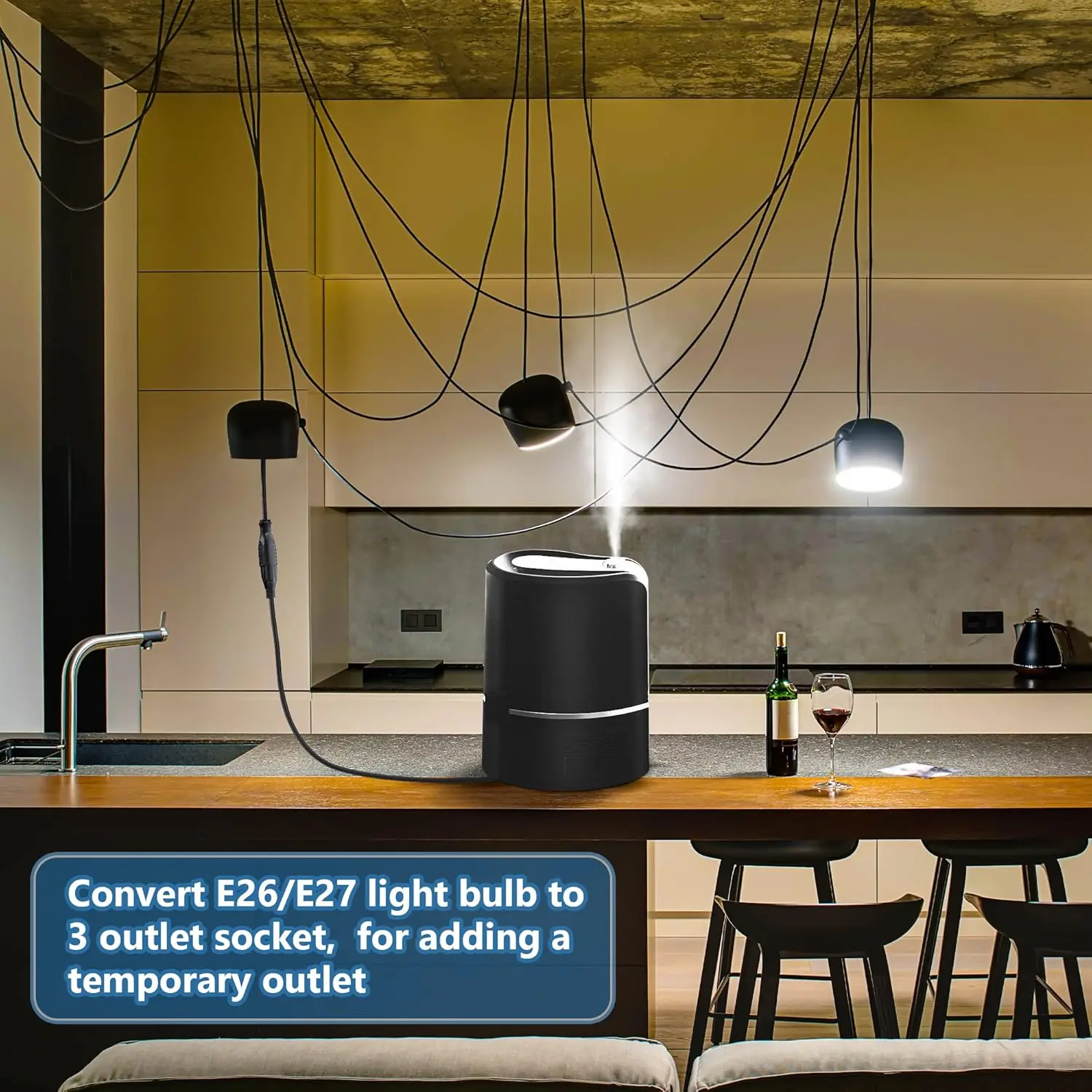 ·[Patent Registered]E26/E27 Light Socket Adapter: convert E26/E27 light bulb to 3 outlet socket adapter, good for adding a temporary outlet at a light socket in garage, basement, workshop, utility room, and more
