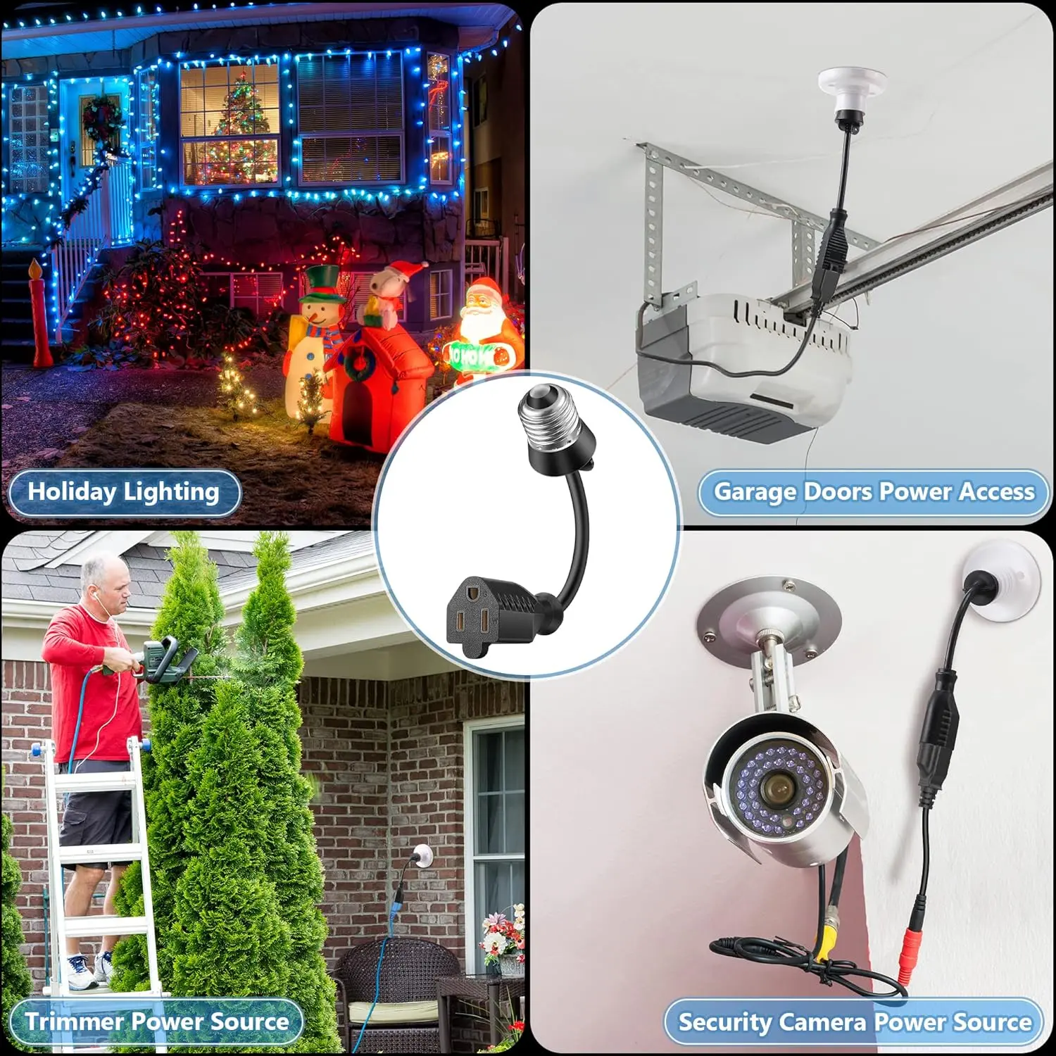 ·Wide Application: this light socket adapter is designed for both indoor and outdoor use, supply power for low-power appliances in the courtyard, and is also an ideal way to add outlets for festival decorative lights