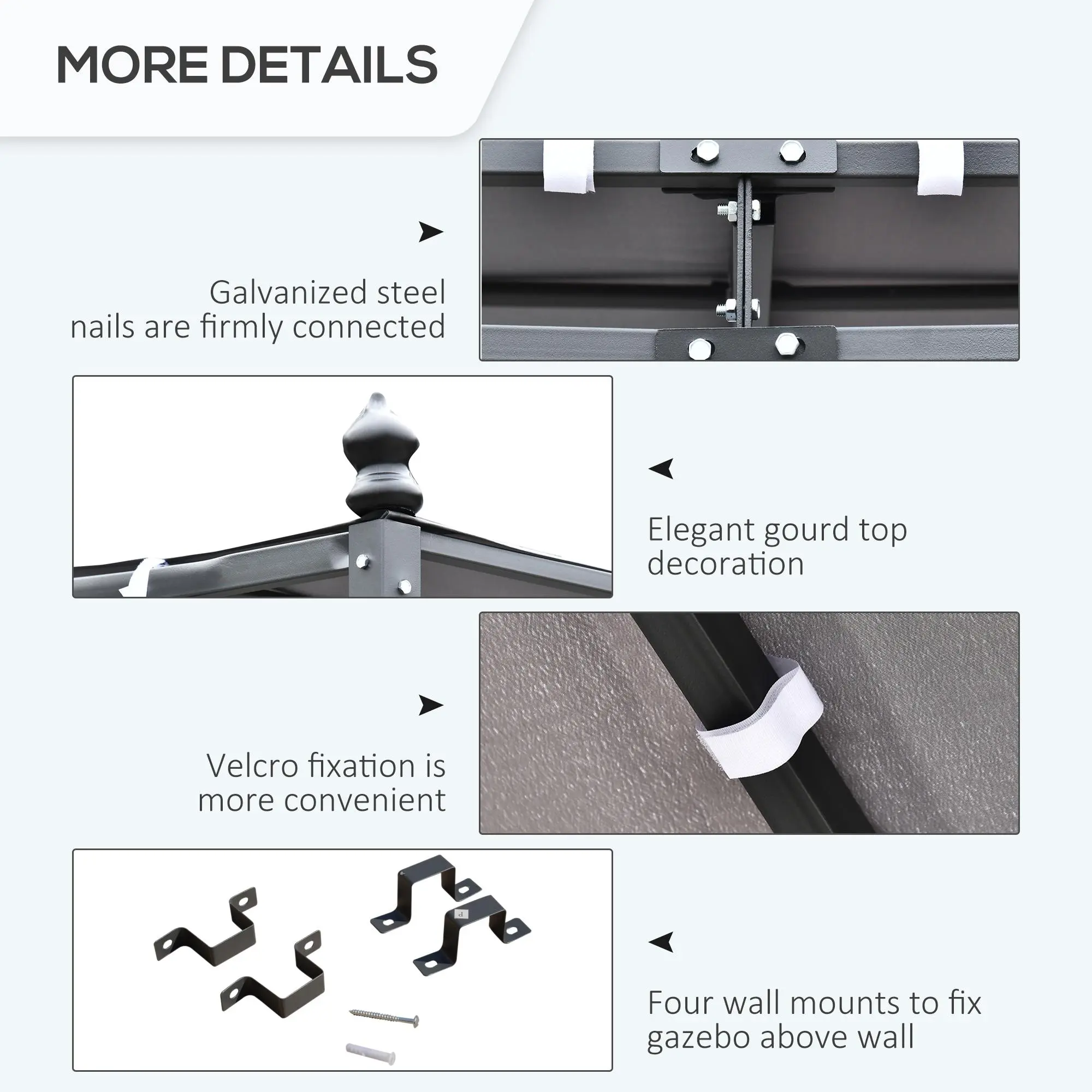 - 16 drainage holes on canopy top to prevent water from gathering in the middle;
