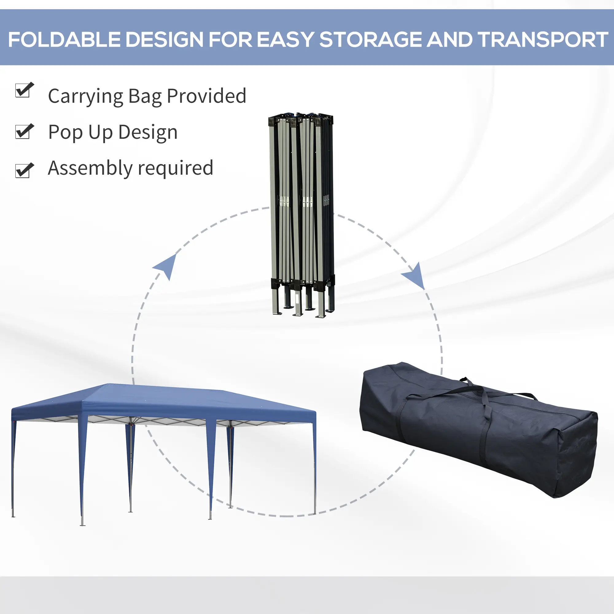 Portable Pop Up: Our extra-large outdoor canopy can help you put on parties and other outdoor events. Swift to set-up and tear down, it has a foldable frame and convenient carrying bag so you can pop-in, pop-up, and pop-out with a little help from friends.