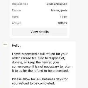 I ordered 2 lamps. One came fully equipped, the other was missing a piece. I requested the piece from the manufacturer and was told that it would ship, that didnât happen. I contacted the TikTop shop and was told Iâd be refunded, that didnât happen!