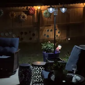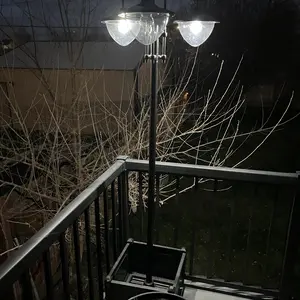 Wow . This is amazing super bright and beautiful đ I will be ordering another for my front yard . This light is really a solution to my back patio . It gives off so much light and I donât need to even have the electric lights on at night to enjoy my patio . Sturdy and good looking . Amazing deal .