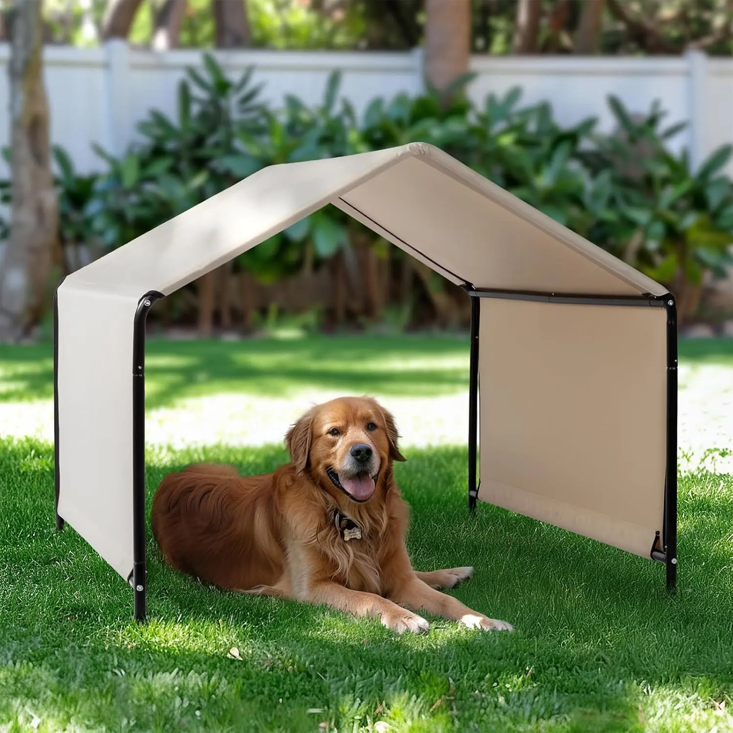 5. Outvita Dog Shade, 4'x4'x3.3' Dog Tent Outdoor Dog Shelter for Outside Large Dogs, Sun Rain Snow Canopy for Big Animal with Waterproof Cover, Ground Stake (Creamy White)