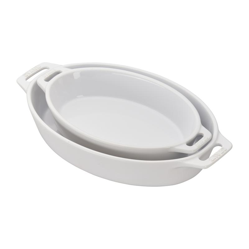 This 2-piece oval baking dish set gently retains heat and won't absorb moisture, producing a delicious result for all your favorite recipes. The comfortable, large handles make maneuvering hot dishes easy. Cook sides and mains, including lasagna, casseroles, and desserts, as well as roasted meats and vegetables. This set offers two of the most essential dishes in the kitchen.