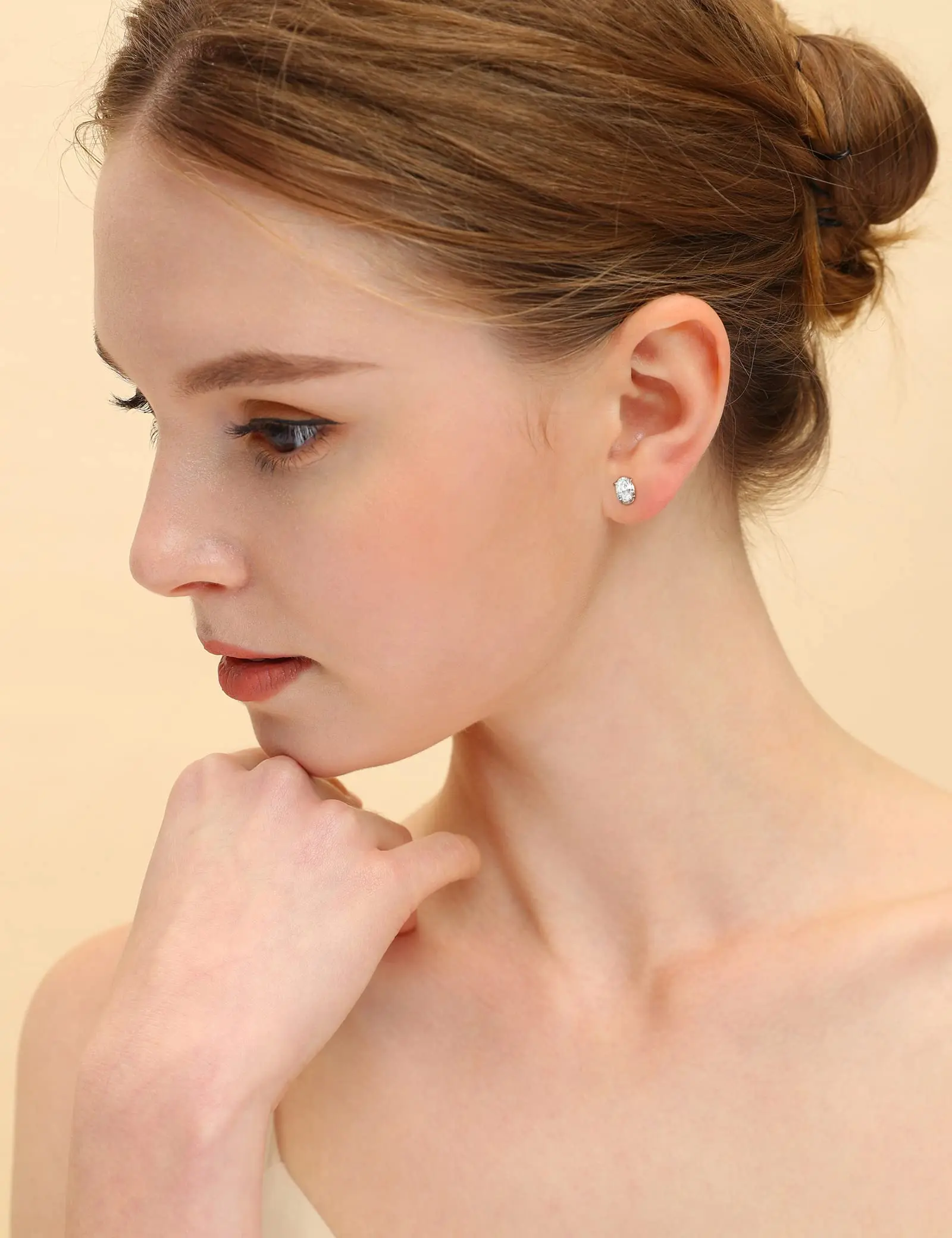 ·♥ Stylish ♥ These sleek and eye-catching stud earrings feature glistening oval CZ stone secured by guardian back. These beautiful 1ct dainty earrings are the height of elegance and simplicity,they are very small and simple, easy to put in and to take off