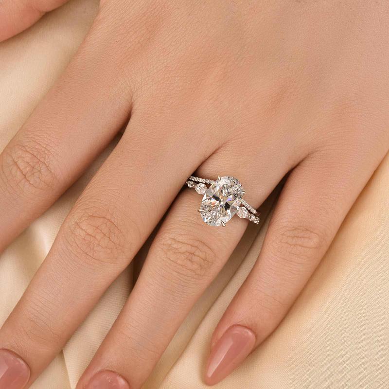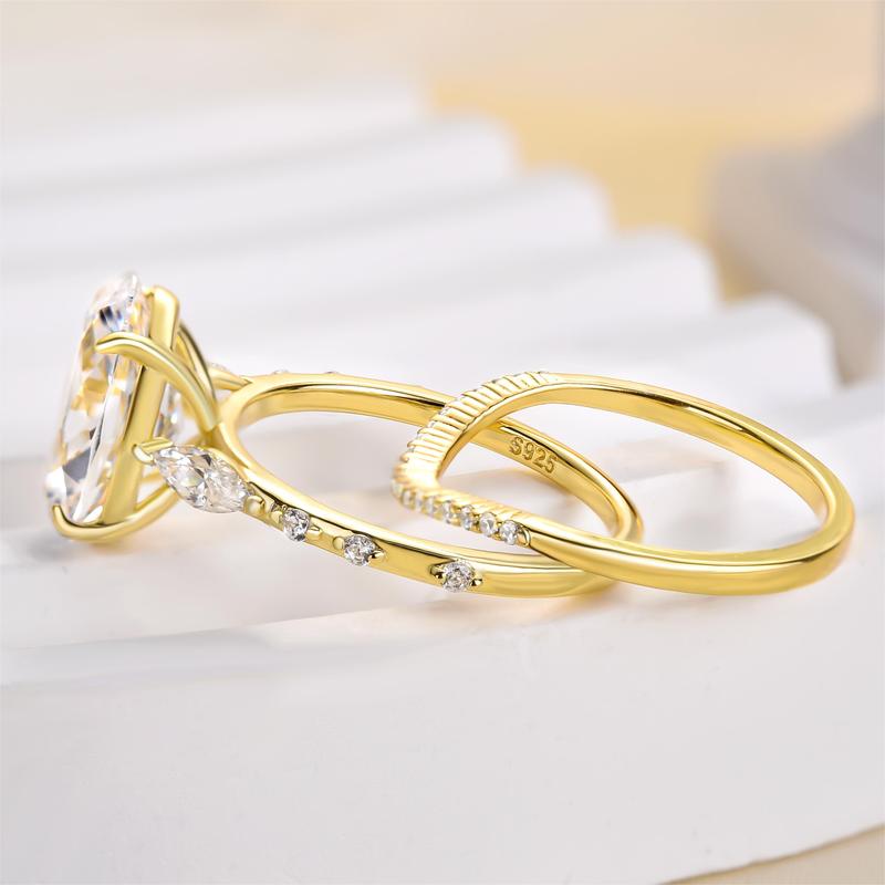 Introducing the Oval Cut (8*12mm) Wedding Ring Set, a perfect blend of elegance and classic design. The engagement ring features a dazzling oval cut stone, renowned for its unique shape and brilliant sparkle. The matching wedding band is intricately designed to align seamlessly with the engagement ring, creating a harmonious and exquisite look.