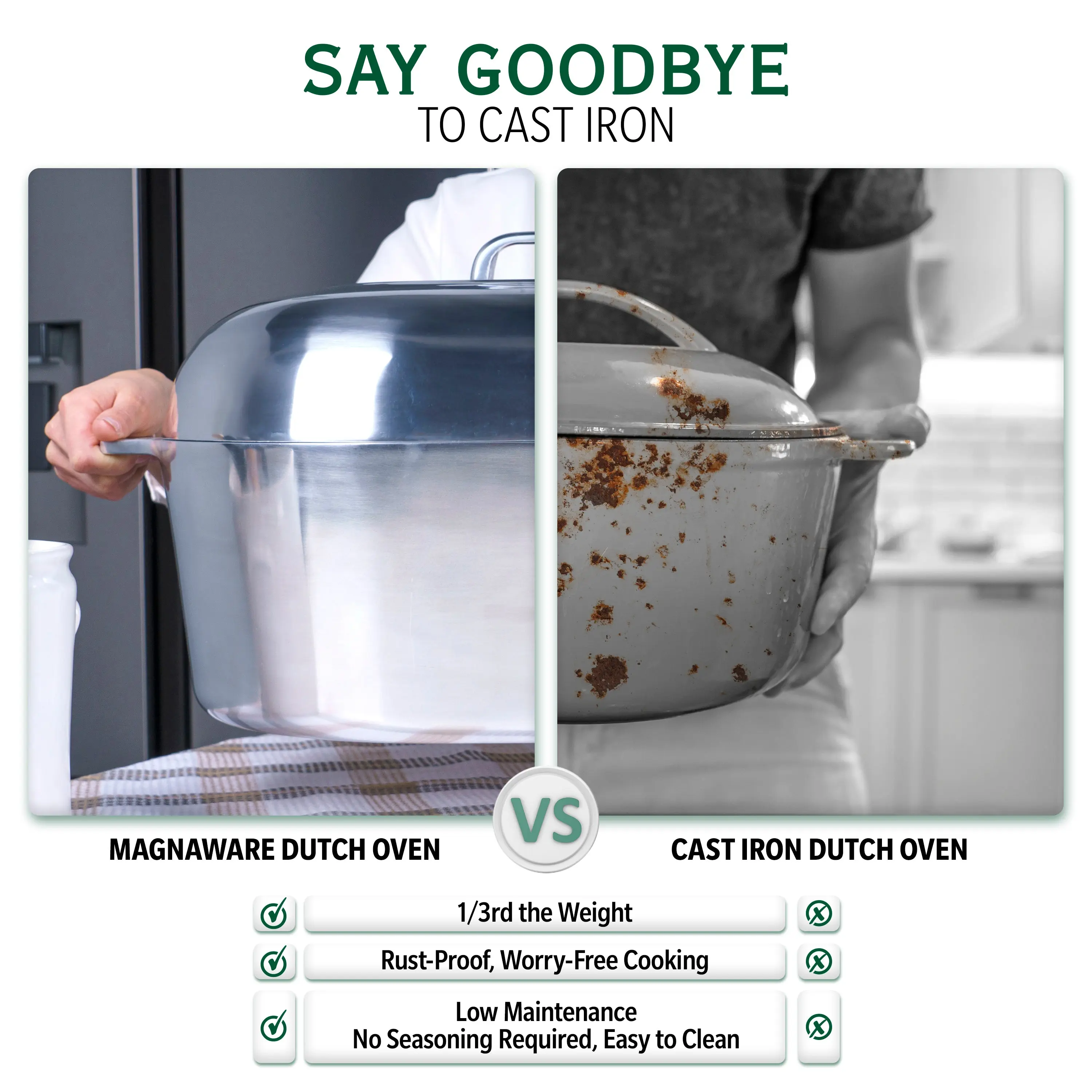 ·Lightweight & Rustproof - Why struggle with heavy cookware? Our cast aluminum Dutch oven oval pot is a breeze to handle, weighing just a fraction of cast iron. Plus, it's super easy to maintain – no need for seasoning, and it won't rust!