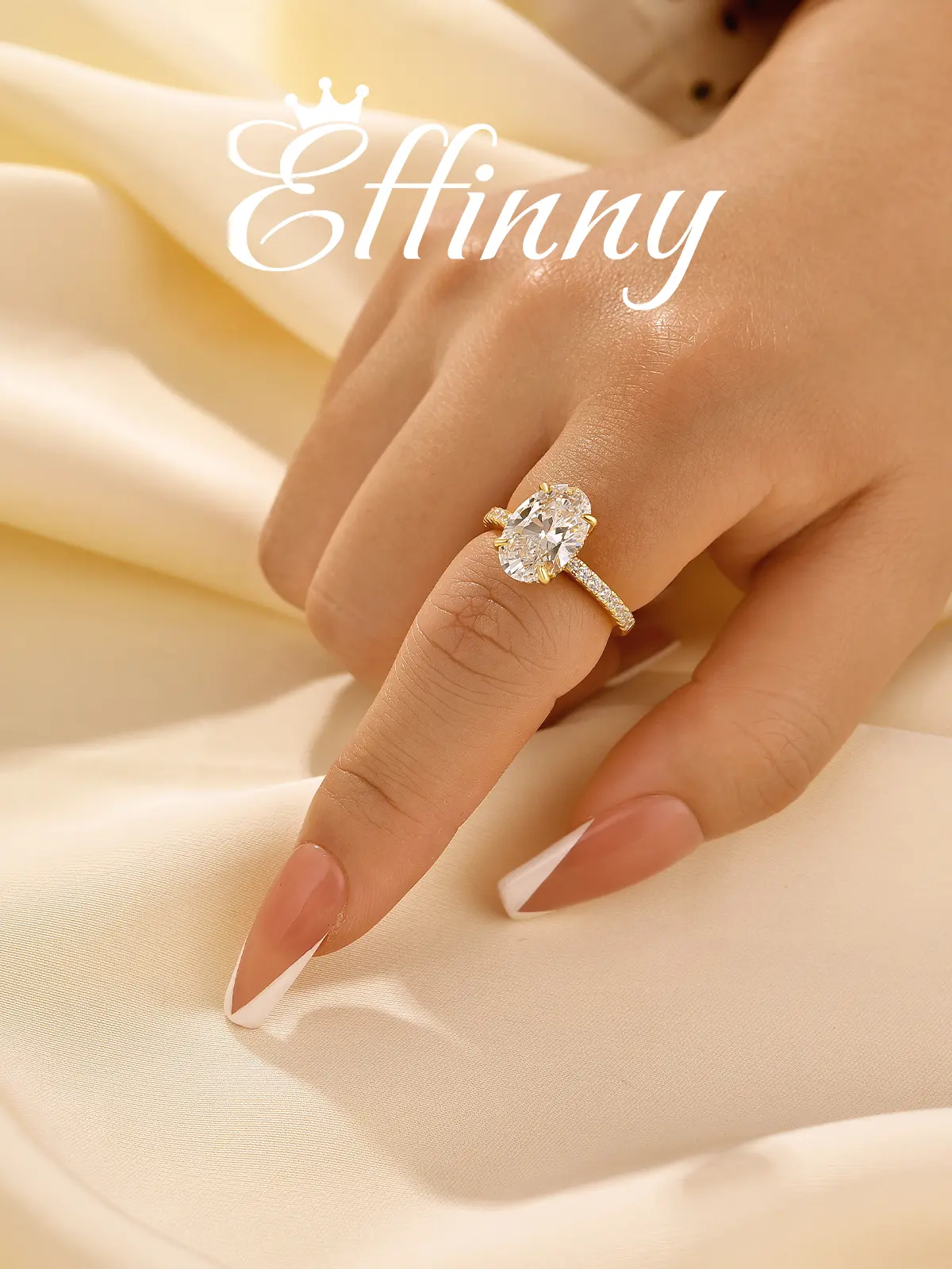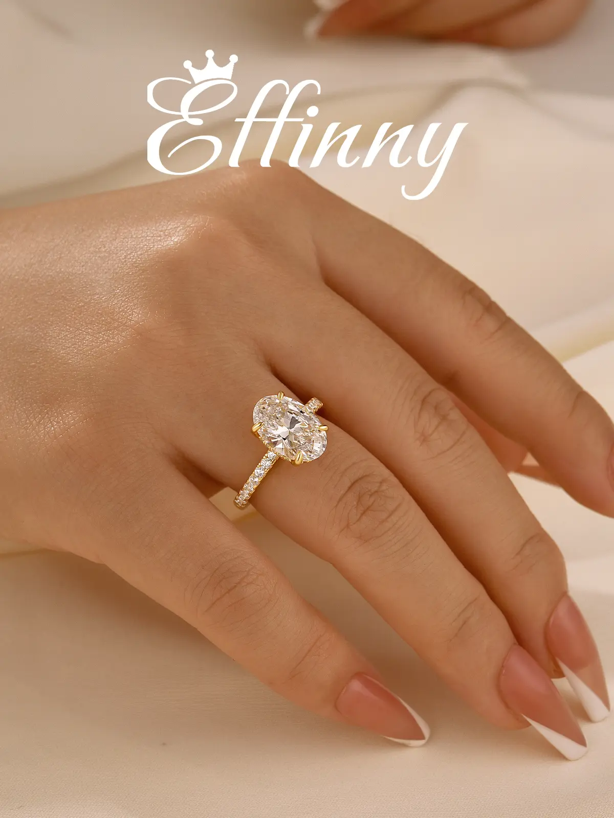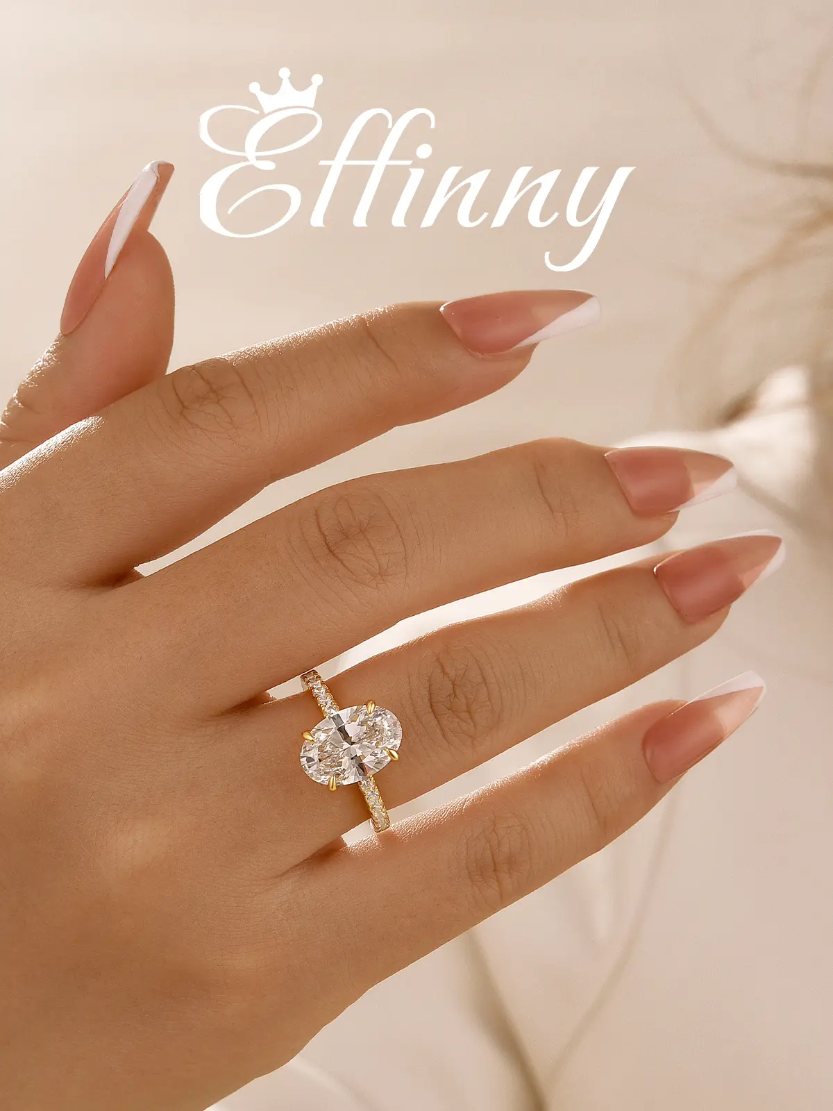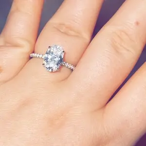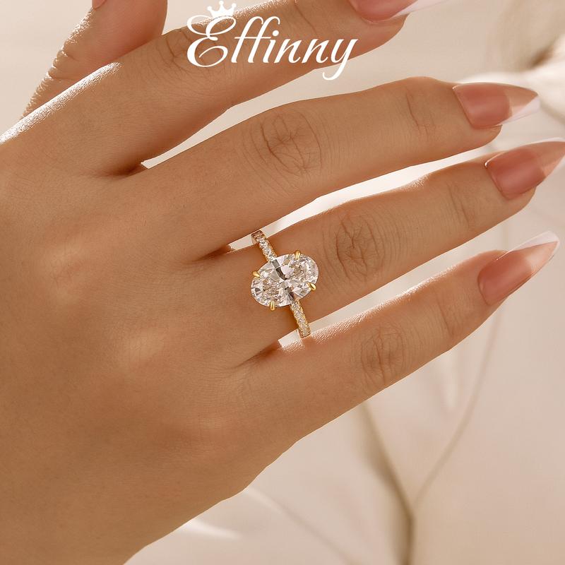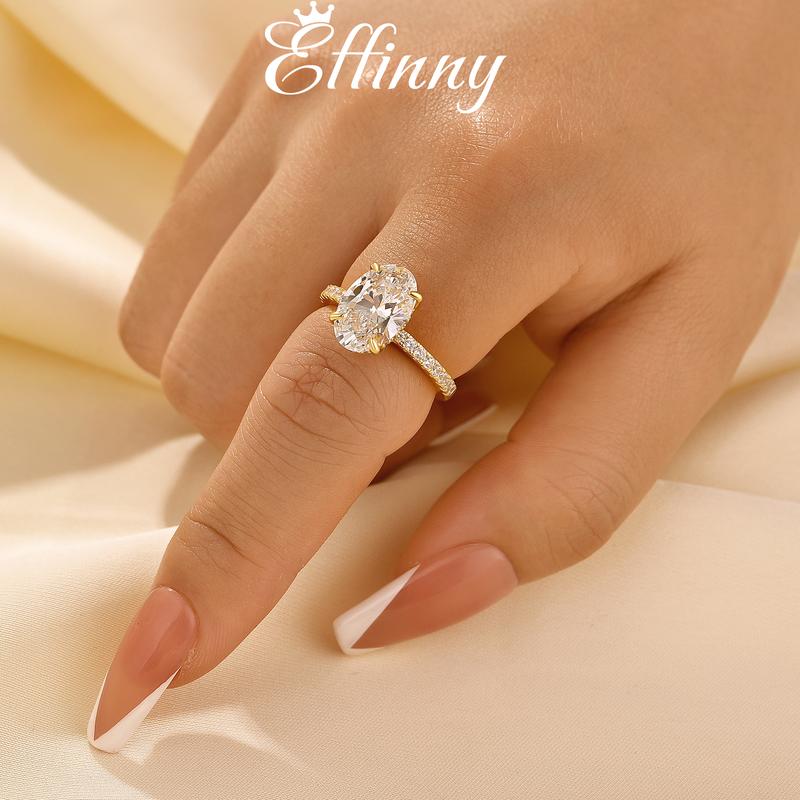 Decorate your life with Effinny's 3.5ct oval cut engagement ring. Crafted from 925 sterling silver, this sparkling ring features a 5A cubic zirconia, offering the perfect balance of elegance and affordability. Embrace luxury without compromise and make a statement that lasts a lifetime.