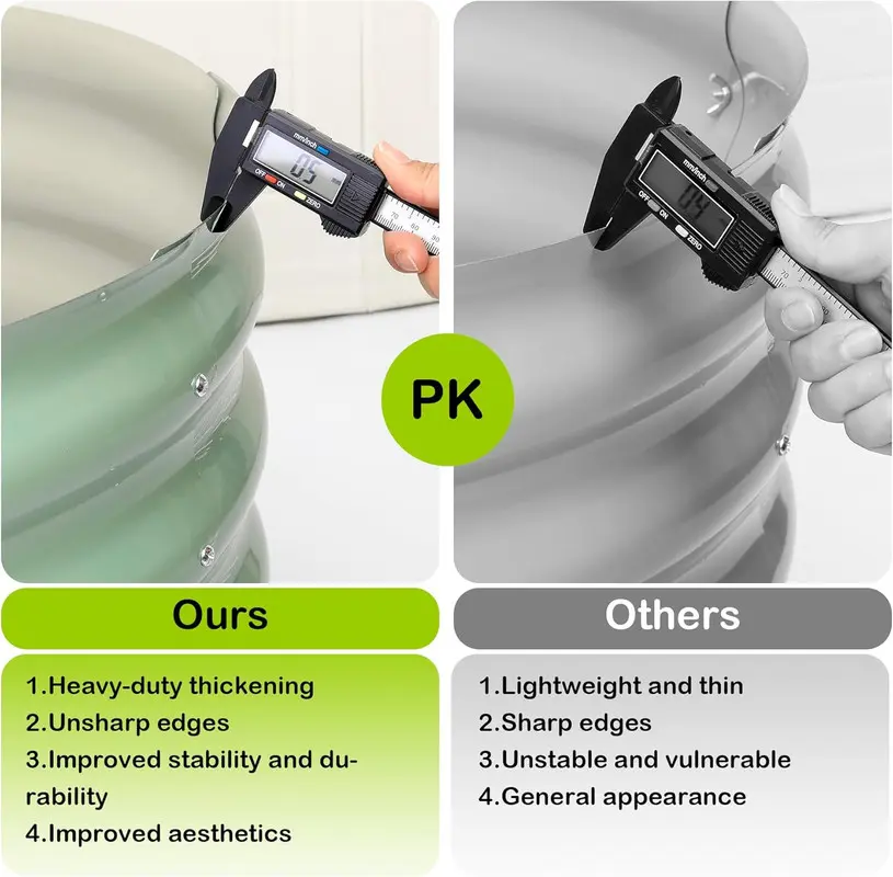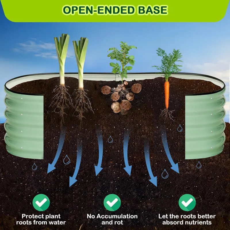 【Enhanced Stability】With a thickness of 0.5 mm and overlapping galvanized sheets up to 1.8 mm, this raised planter bed offers excellent stability. The added screw-fastened edges and oval shape keep the structure sturdy, even when filled with soil.