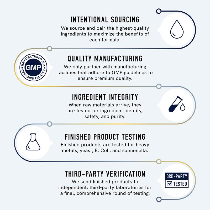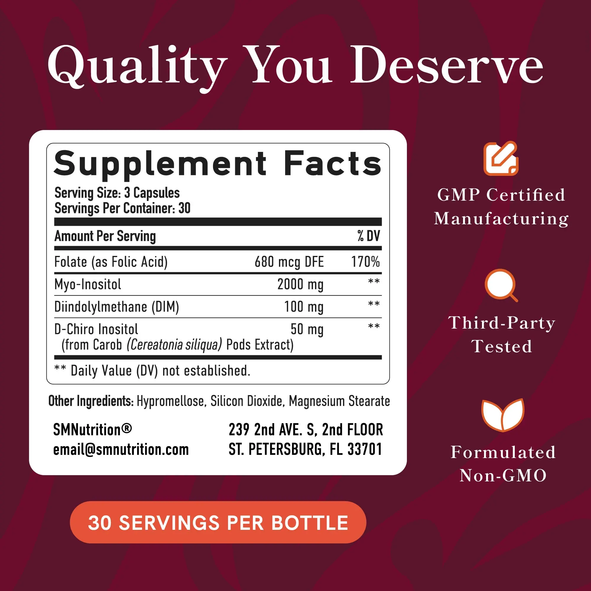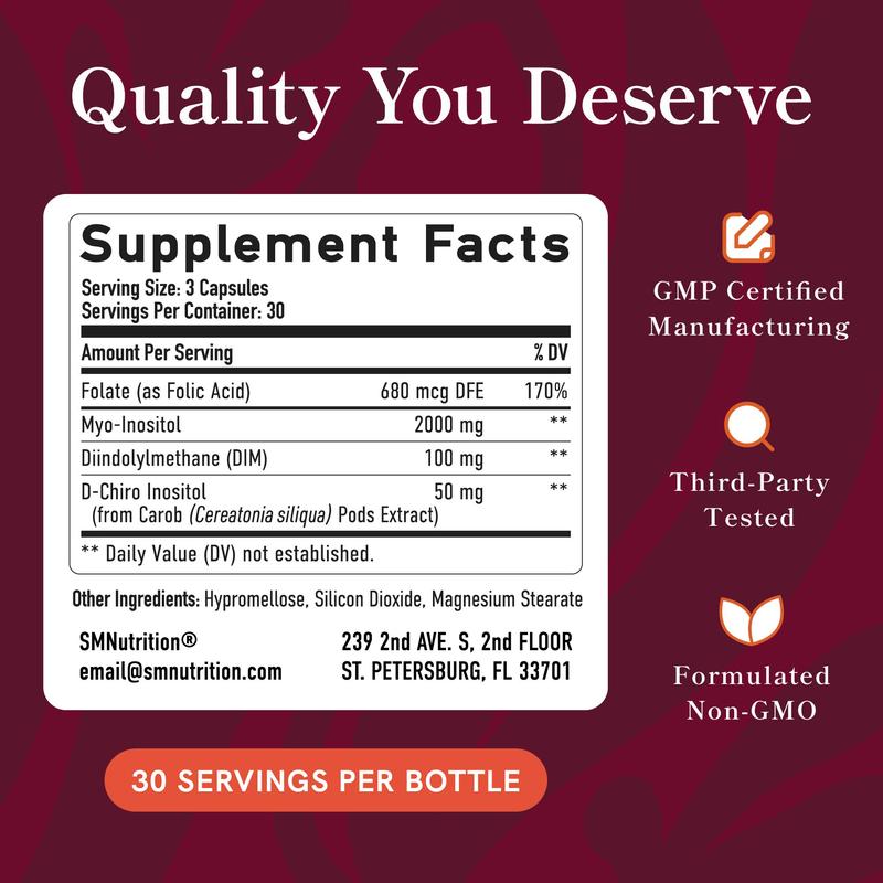 Ovarian Support Complex by SM Nutrition is formulated Non-GMO, Third-Party Tested, and manufactured in a facility that is certified GMP compliant with NSF standards.