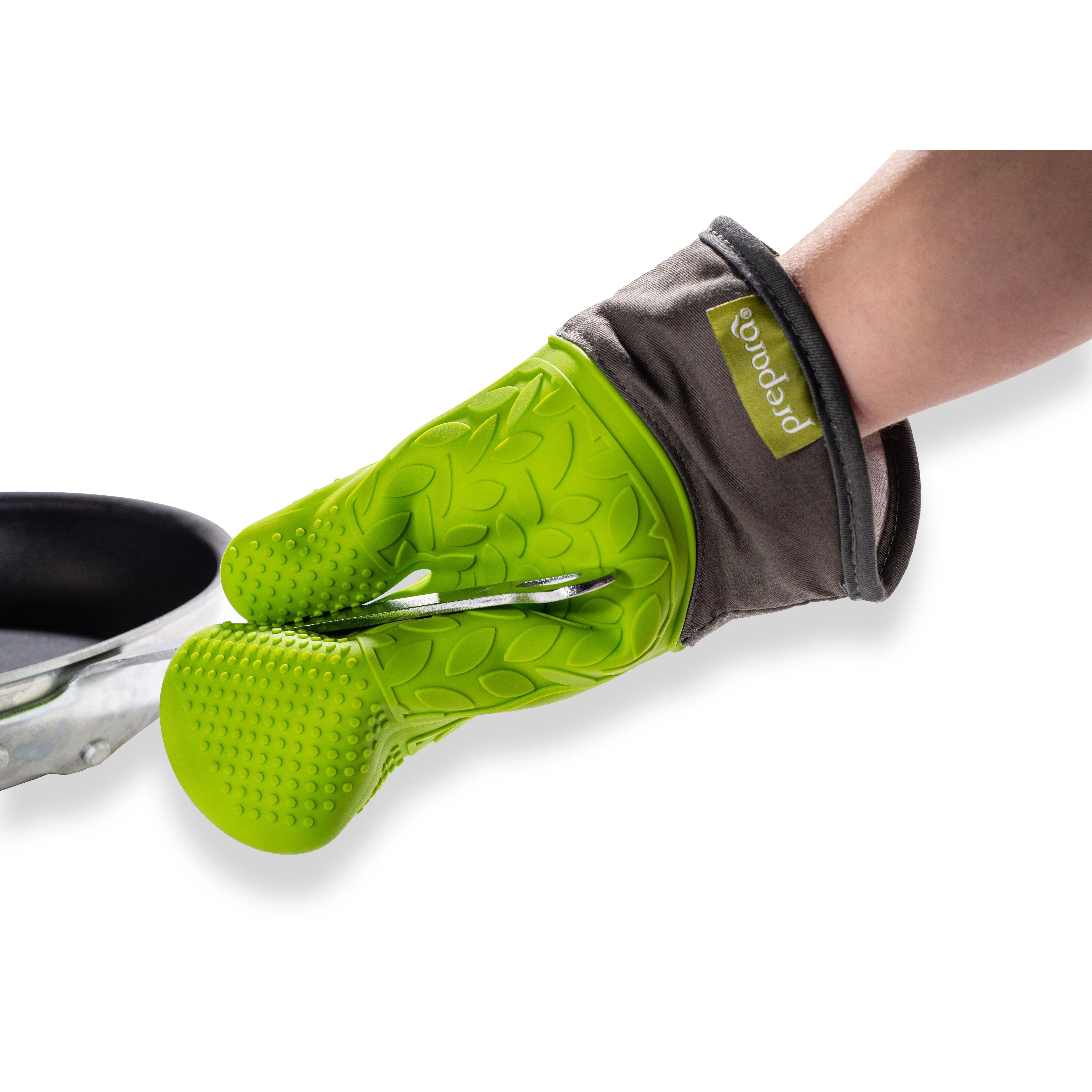 The Prepara Oven Mitt is constructed of multi layer cotton and non-slip silicone grip which helps protect and give your wrist flexibility. The innovative extended cuff feature gives you extra protections when reaching into the oven or over other pots/pans on the stove. Handling hot dishes, pots, and pans just got so much easier.
