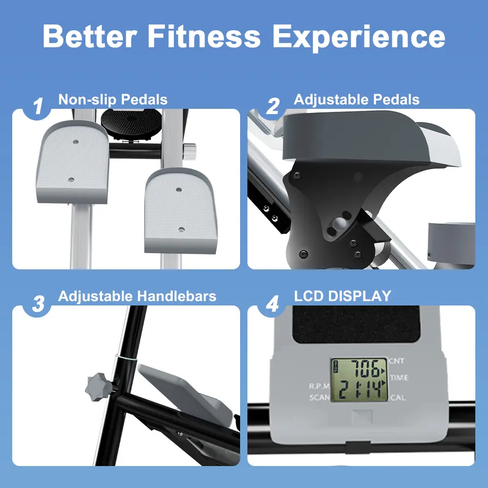 【220LB Heavy-Duty Frame】Built with reinforced steel construction and a wide&non-slip base, this climbing exercise machine ultimate stability even during vigorous workouts. Textured pedals and padded handles ensure secure footing and grip.