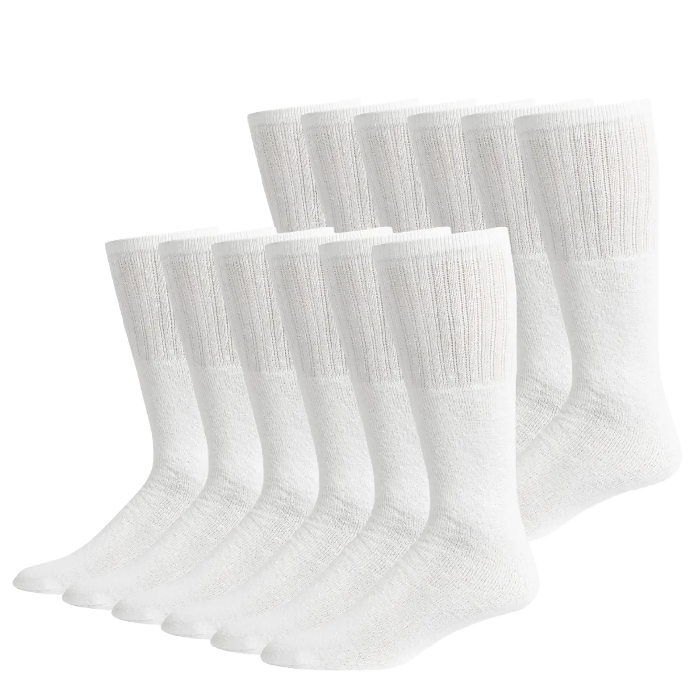 Elevate your athletic performance with our 12 Pairs Over The Calf Tube Socks, designed for optimal support and comfort during your workouts and sporting activities. These knee-high socks are made from a premium blend of 80% cotton, 15% polyester, and 5% elastic, offering both cushion and flexibility.