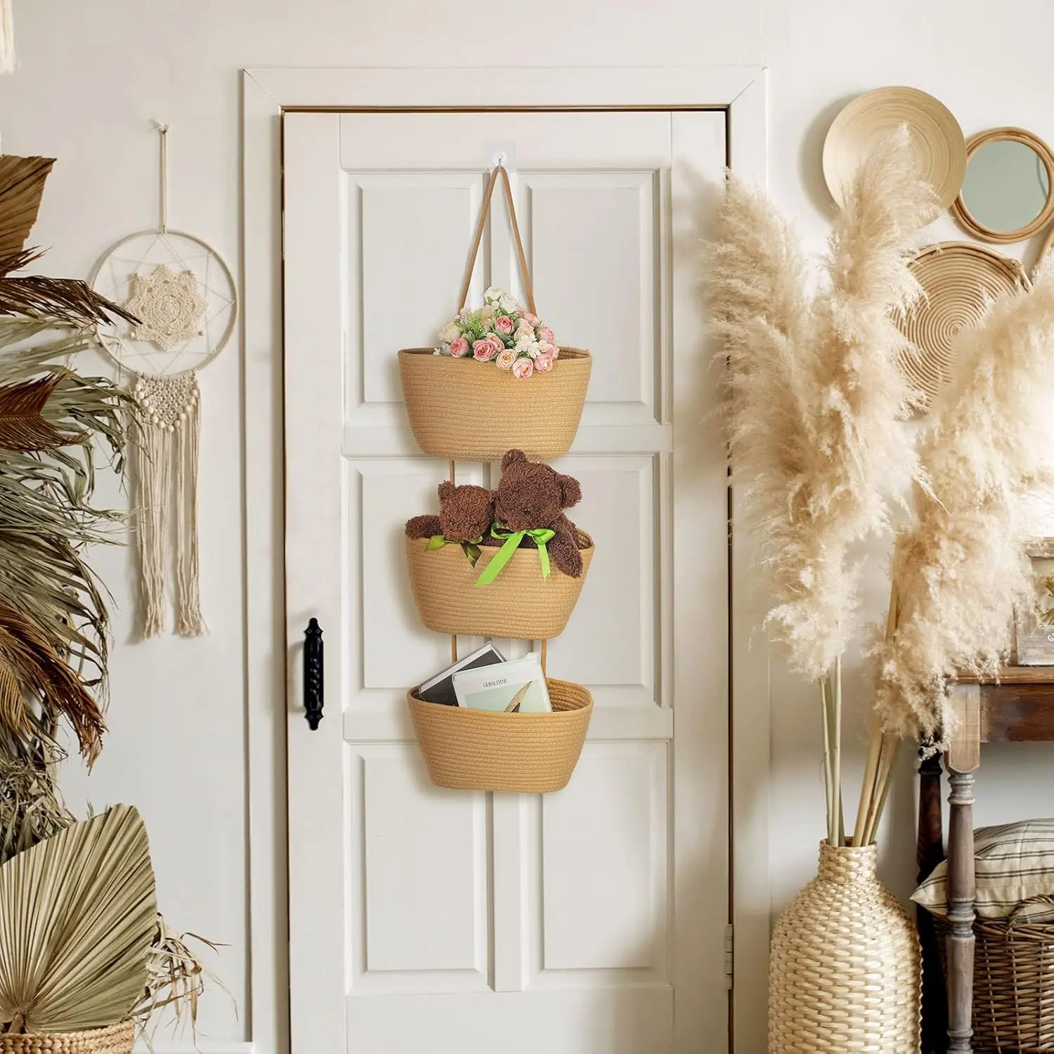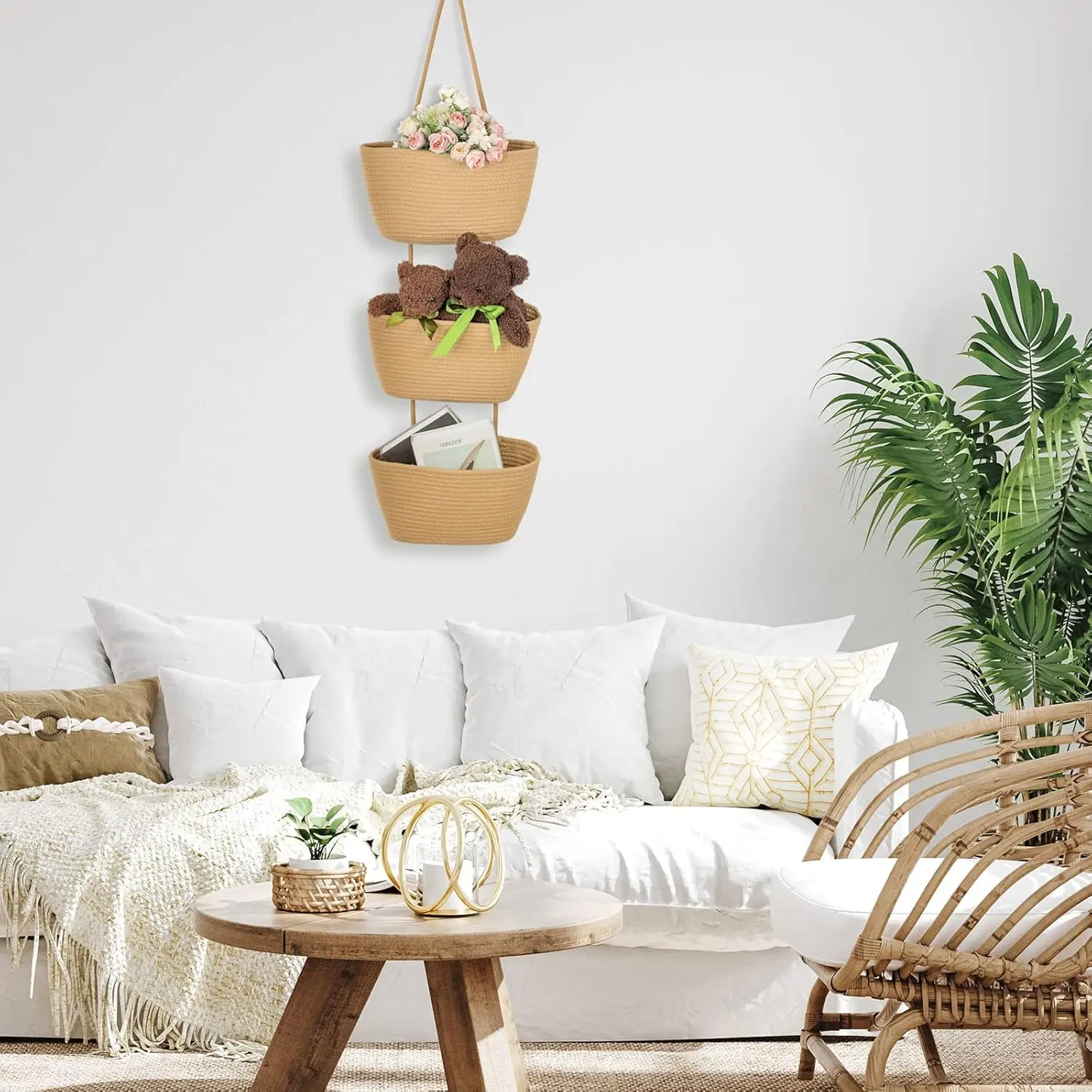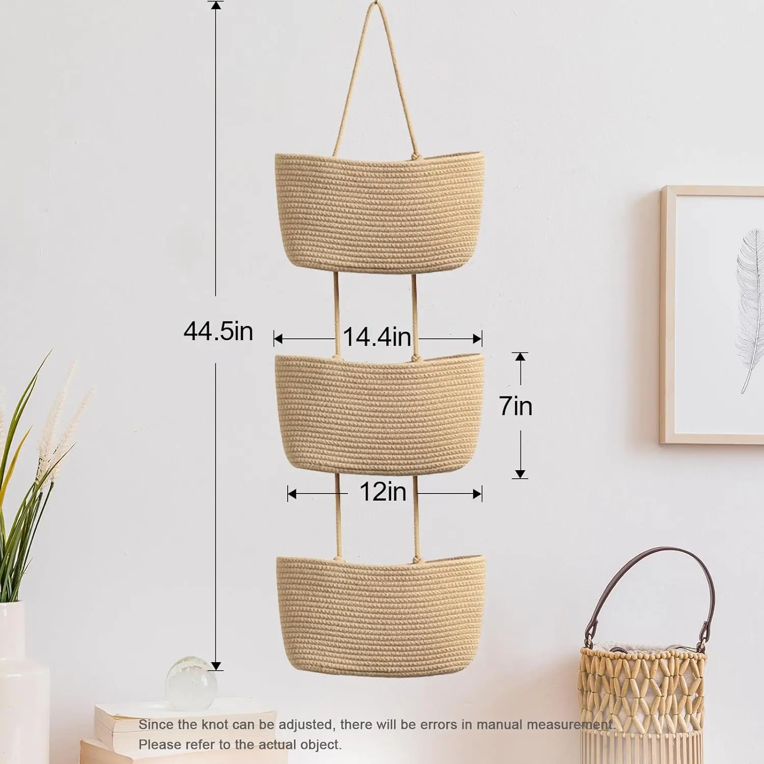·Decorative Baskets: each of our hanging baskets for organizing is combined by 3 tiers of baskets, adopting elegant light tan color, full of rustic, farmhouse and boho styles, will add some warm and exquisite taste to your space