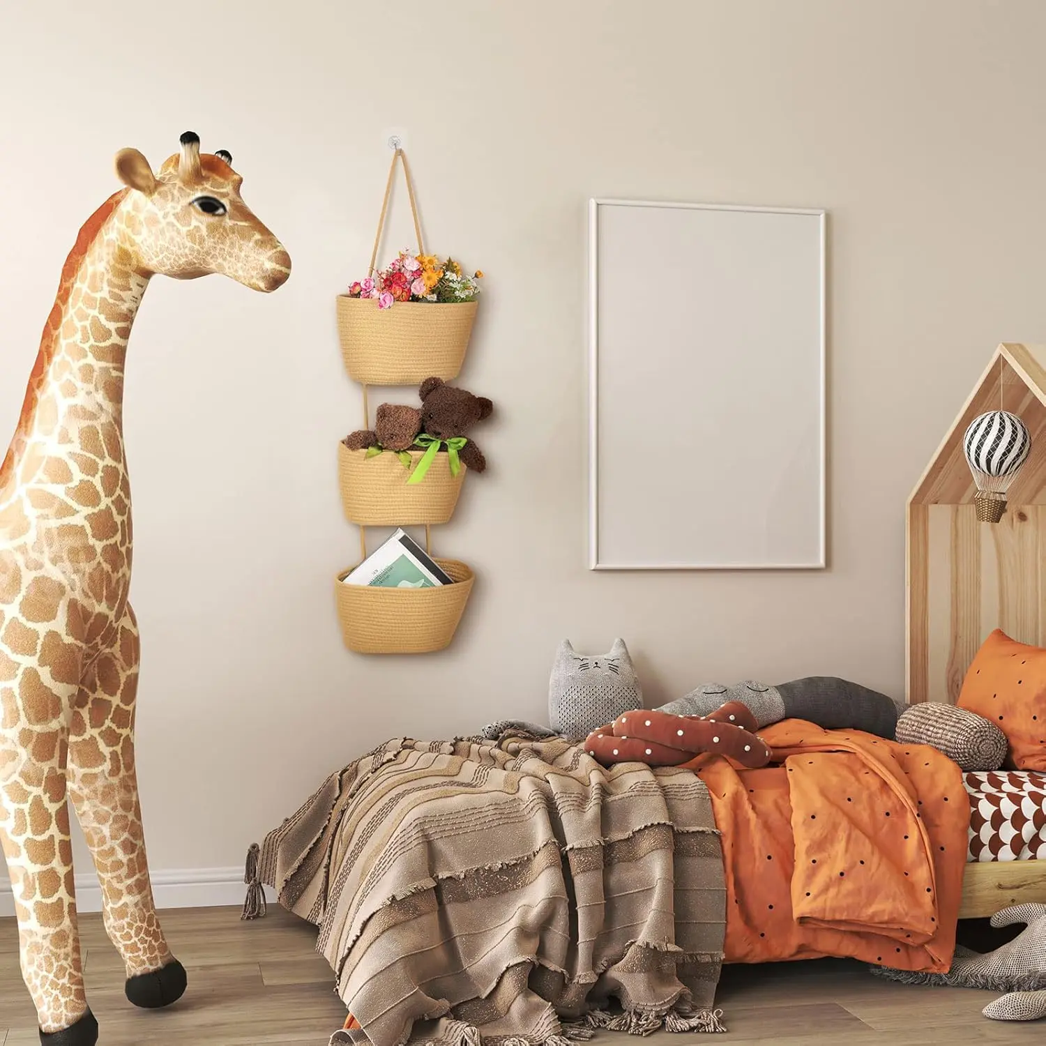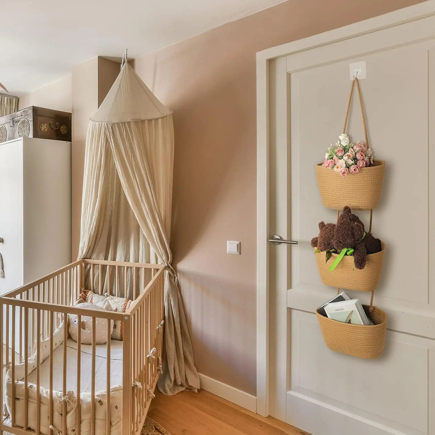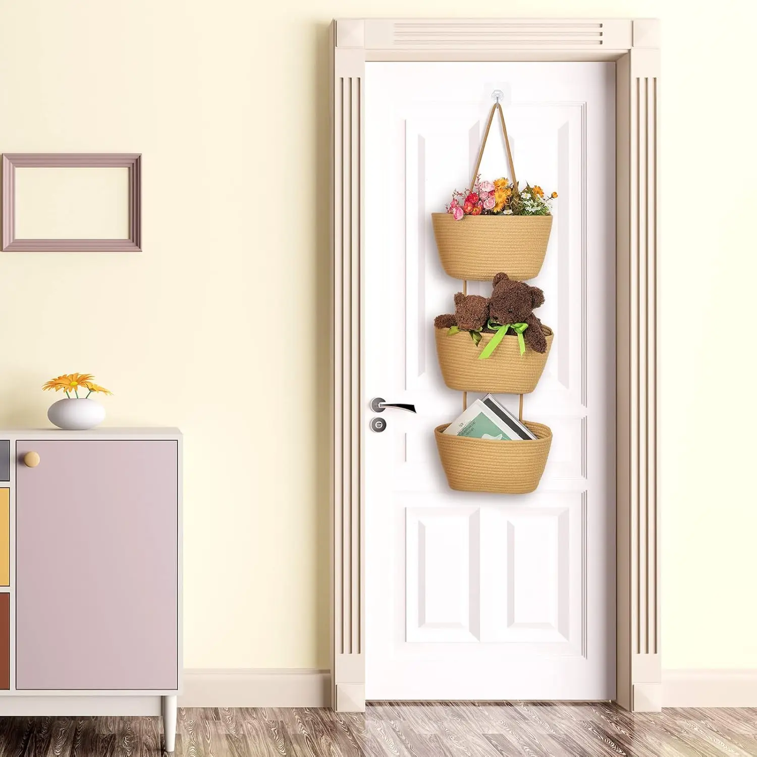 ·Decorative Baskets: each of our hanging baskets for organizing is combined by 3 tiers of baskets, adopting elegant light tan color, full of rustic, farmhouse and boho styles, will add some warm and exquisite taste to your space