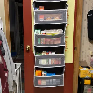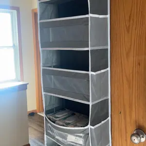 This organizer is ideal for bedrooms, bathrooms, nurseries, dorms, and closets. It features a space-saving anti-tilt design. Choose from gray, pink, or black. The 5-tier storage rack includes 10 large-capacity pockets. These pockets are clear and mesh, enhancing visibility. Perfect for Christmas gifts.