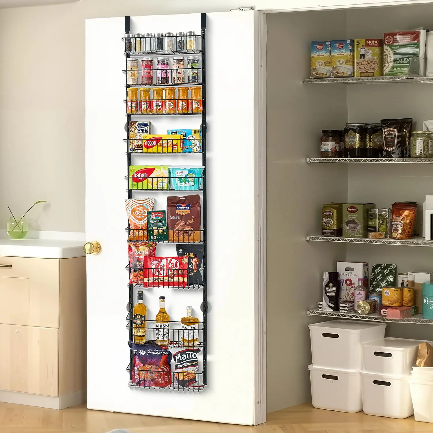 • Adjustable & Easy to Install: This pantry organization and storage rack features adjustable basket spacing to accommodate items of different heights. You can hang it on the door or use the included screws to mount it on the wall, with assembly completed in just a few minutes