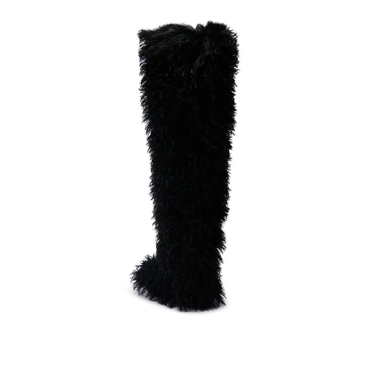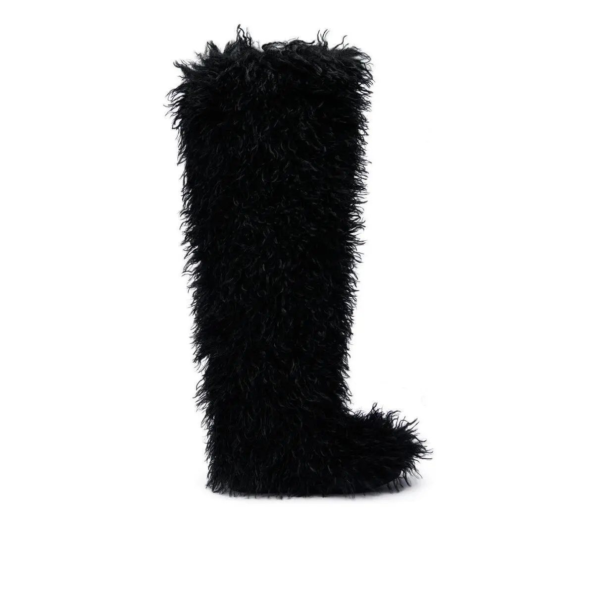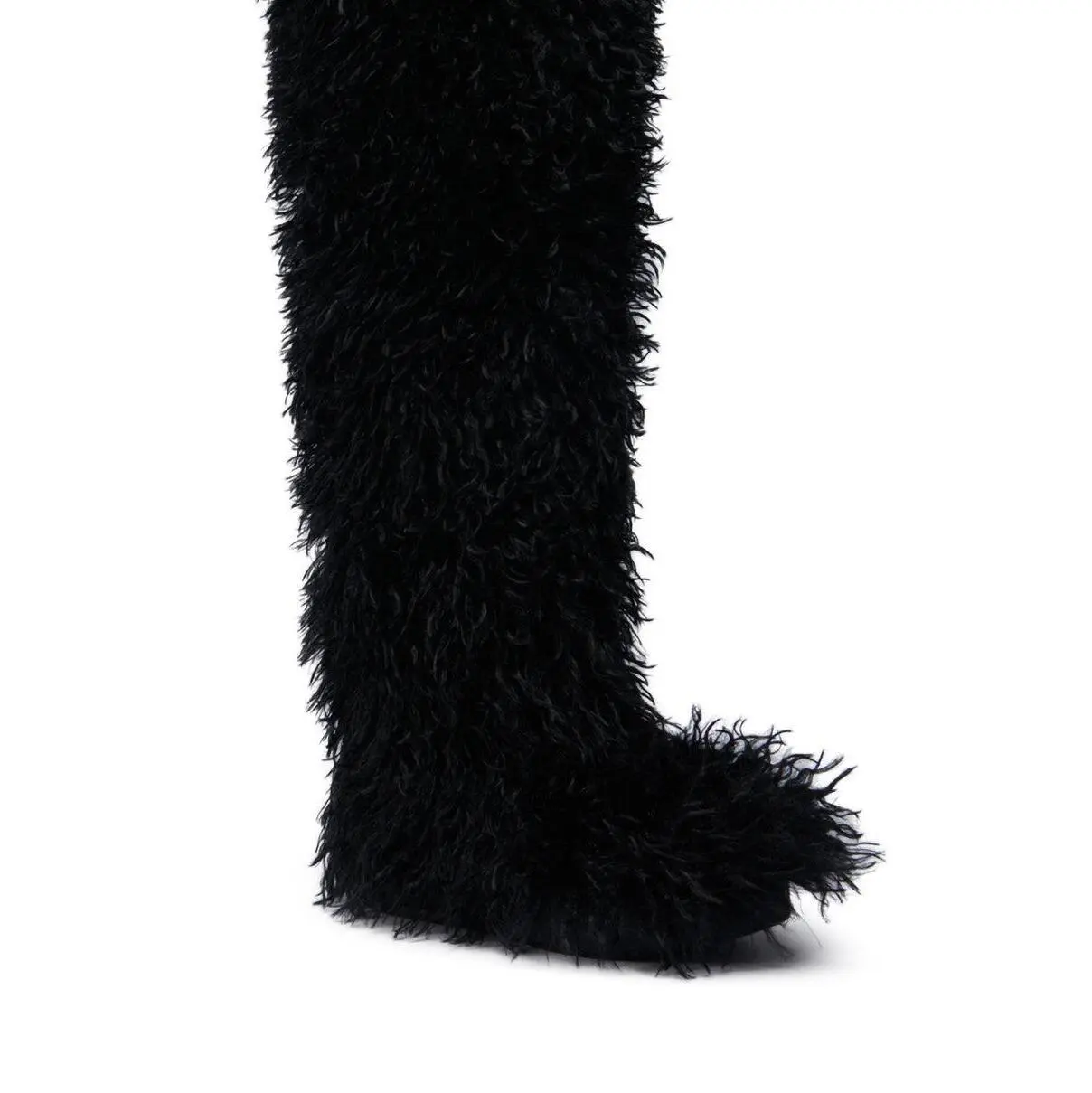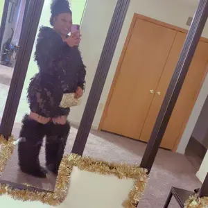 I’m obsessed these boots are giving sexy vibes. The only thing you have to size up they are cut too small. Wish I would’ve gotten a size 10. Other than that the material is great soft fur hard bottom go over the knee and I have thick thighs so they are calf friendly. Get the boots ladies.