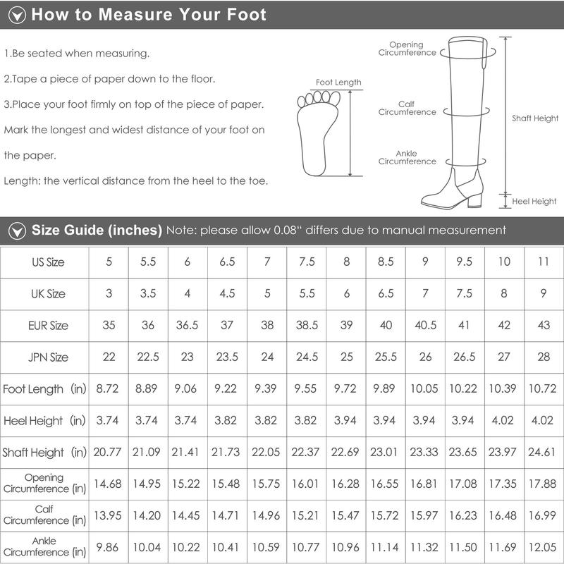 Secure a special look in these Dream Pairs women's over-the-knee chunky heel boots. Built with a thigh-high design and approximately 5" heels. Put on and take off easily via a zipper closure and elasticated rear. Crafted from synthetic and fabric linings, with a cushioned footbed.