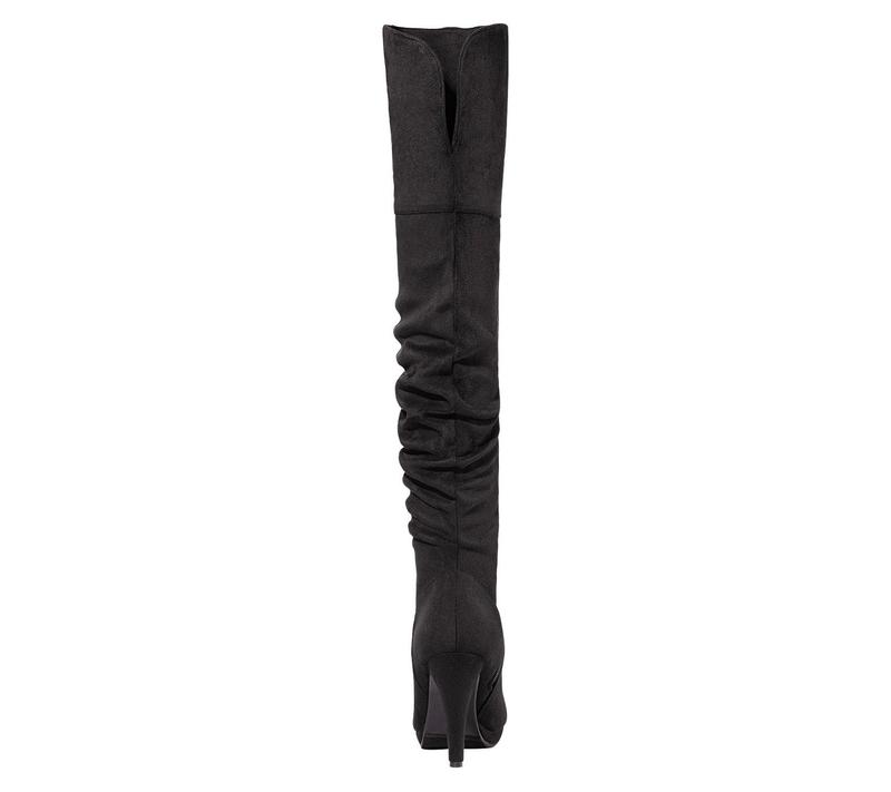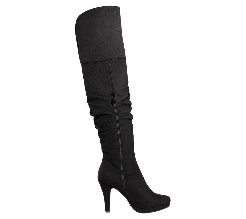 Elevate your cool-weather style with these over-the-knee chunky heel boots. Perfect for pairing with skirts or skinny jeans, these boots offer a sophisticated look while keeping you comfortable all season long. The convenient zipper closure and elastic back ensure a snug fit thats easy to slip on and off. From Dream Pairs.