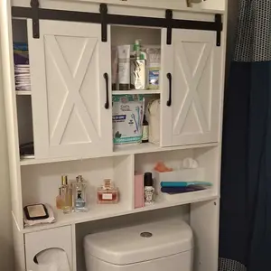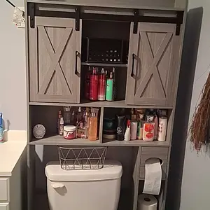 ·【Multi-functional Unique Design】Featuring 2 sliding doors for discreetly storing towels and toilet paper, this over-the-toilet rack shelf also includes open shelves for convenient access to everyday essentials. Specially designed vertical cabinets offer additional storage space for paper rolls, ensuring your bathroom stays organized and clutter-free.
