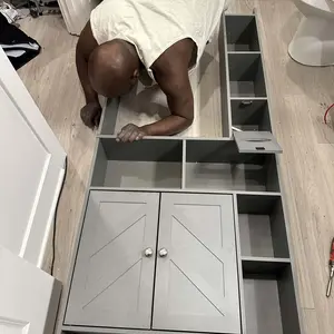 me and my boyfriend set it up together very sturdy instructions were easy to follow, and fits perfectly in our bathroom 10/10