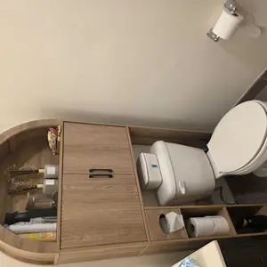 ·Optimize Bathroom Space: Two doors keep your personal belongings storage from exposing outside, while a partially open space is also provided for easy storage of daily necessities. Specially designed vertical cabinets provide additional storage space for paper rolls, the enclosed tissue box keeps rolls dry and easily accessible.