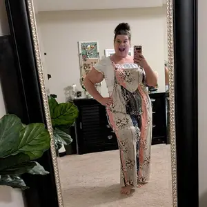Love how comfy and flowy this is! It’s a smidge long for us short girlies, but does run true to size or a size big (for those of us with a bigger midsection, you may want to stay true to size, others may want to size down one). Not the greatest quality, but it’s cute and functional!