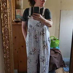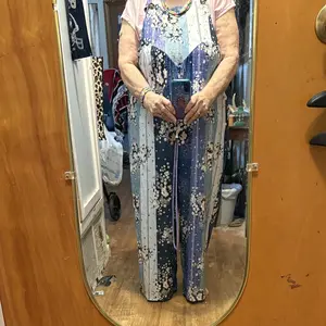 After losing 60 pounds bought 3 more downsized to replace the 3 previous ones. Beautiful soft knit floral multicolored green overalls. Love these.