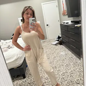 This jumpsuit is perfect. Fits perfect 5’8 good lengths, adjustable straps, cute pockets. Super comfy, stretch material.
