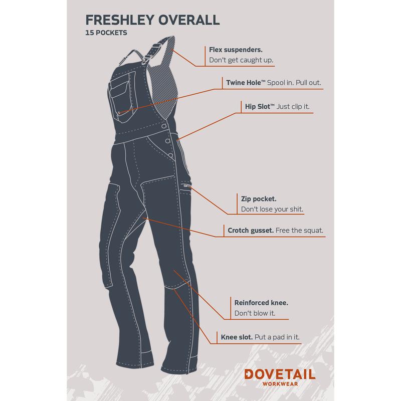 Folks, our Freshley Overalls are F’in magical. Containing the signature Dovetail Workwear “stretch sauce,” these overalls are designed to fit and move on every body while bending, digging, painting, or shearing. Freshley is a full-body toolbox of nested pockets for stashing seeds, brushes, pliers, and phones. The bib pocket includes a genius eyelet—fancy language for “twine hole”—through which to run twine for tying up the tomatoes, or to hold your fine-gauge wire spool. Did we mention it looks damn good on?